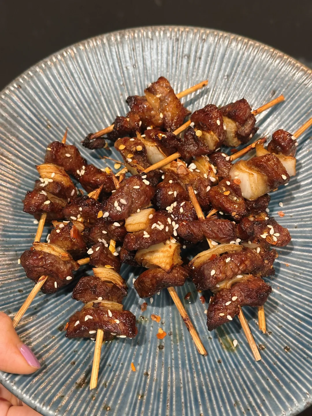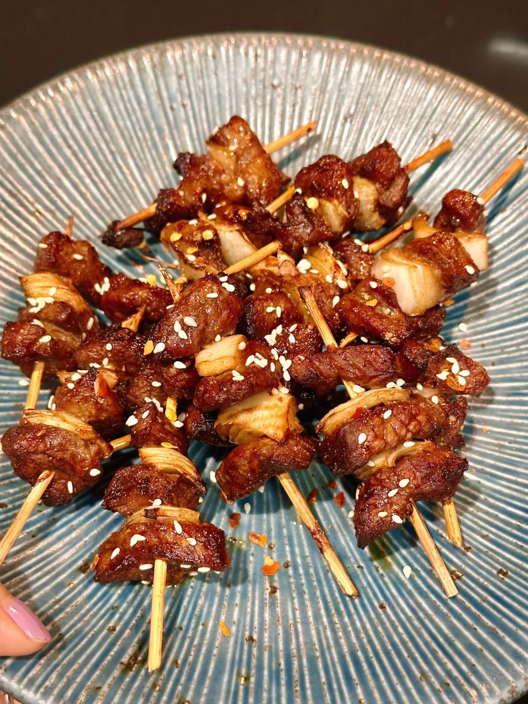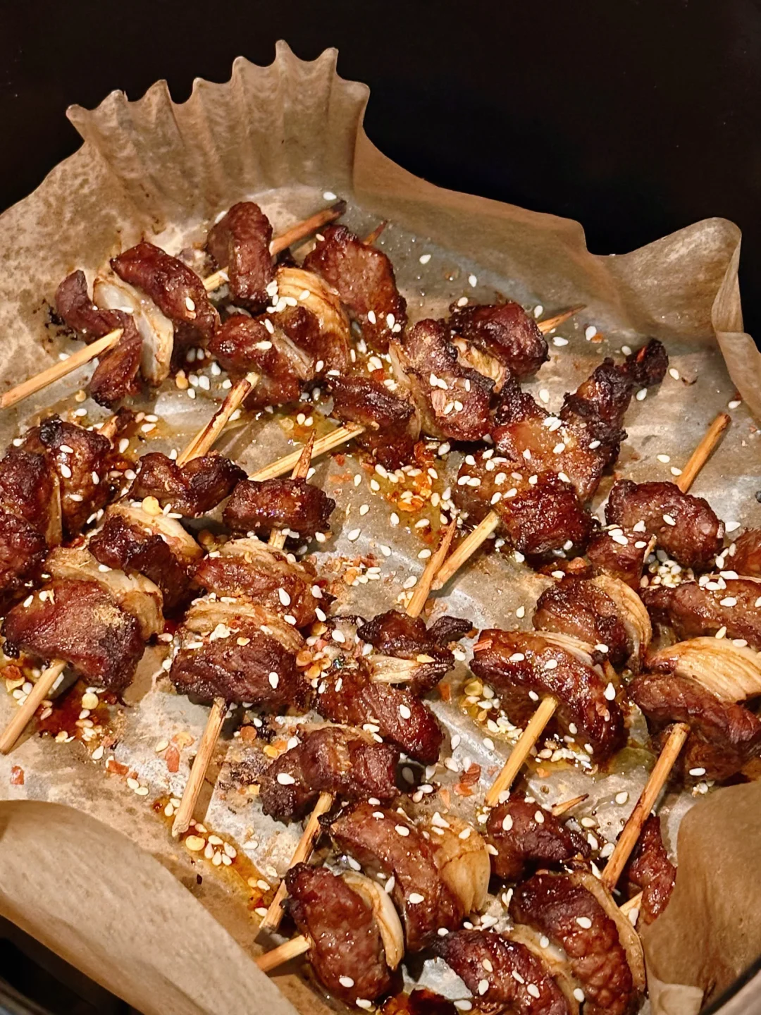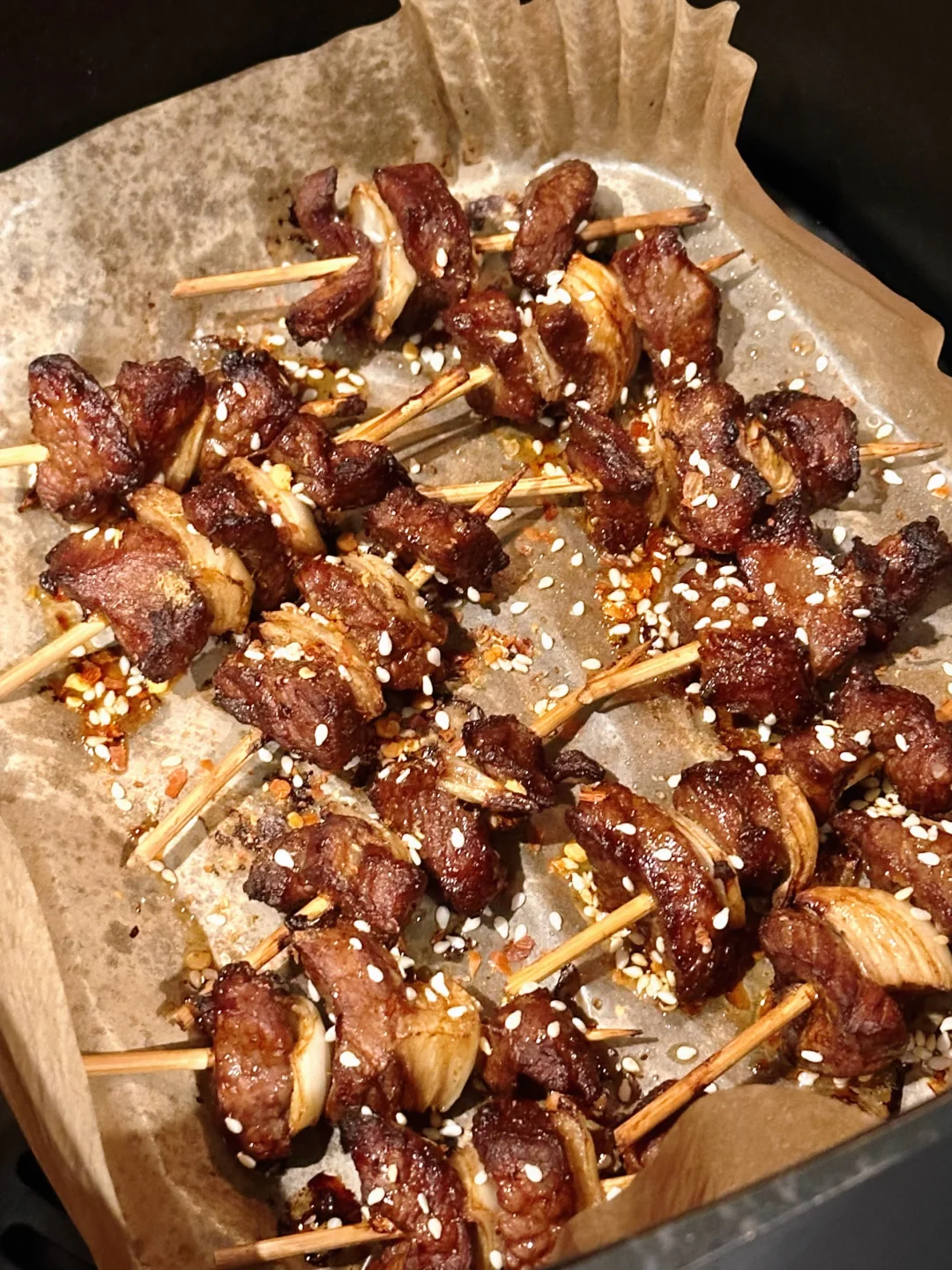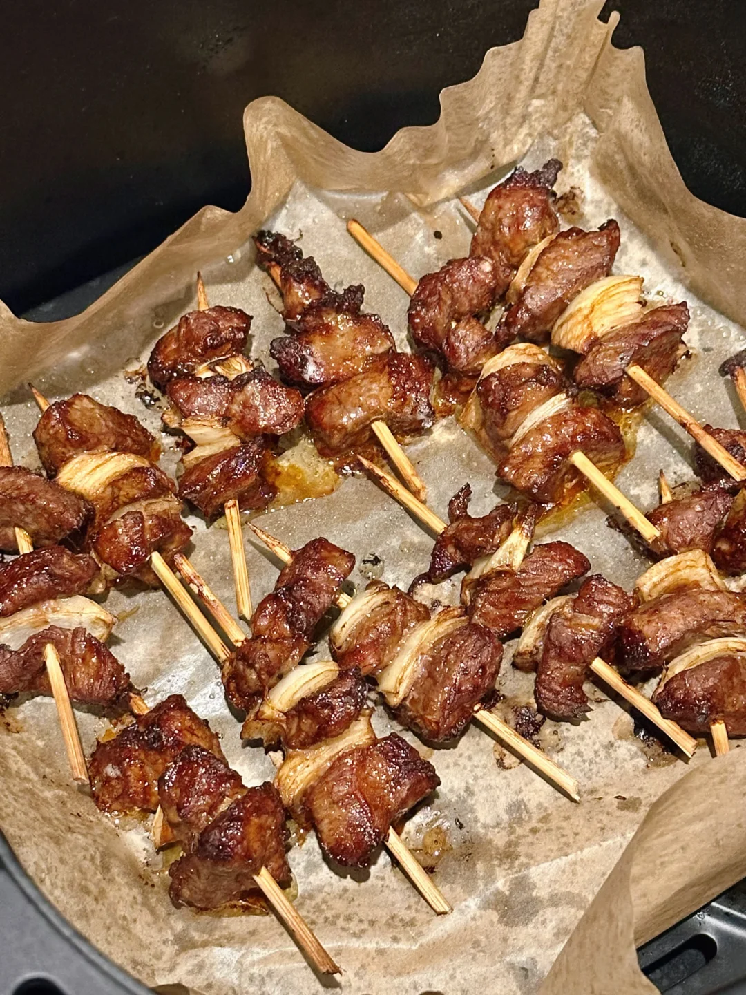 这次自己在家,用空气炸锅做了牙签羊肉!效果非常好!