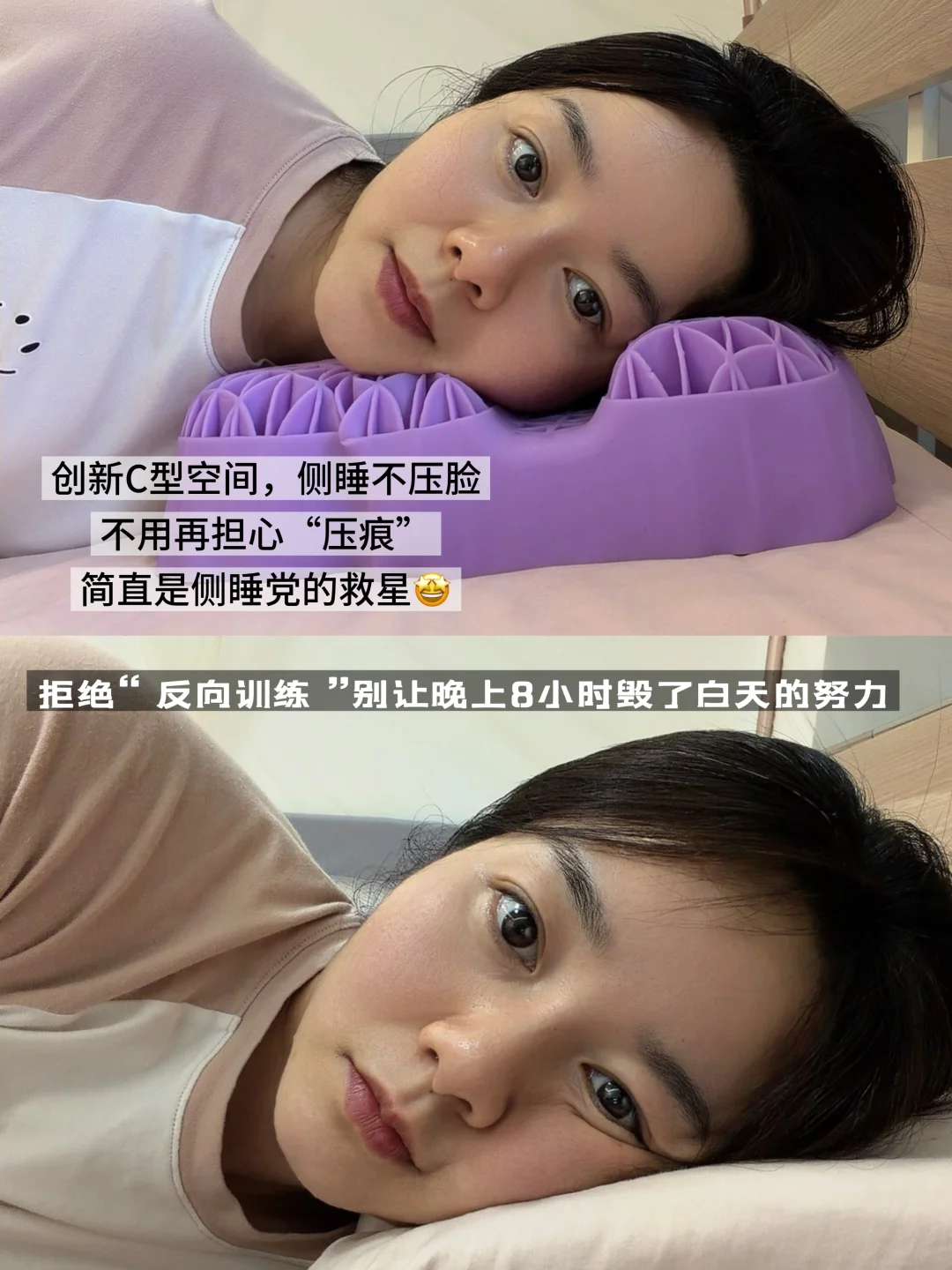 🌟如果你每天睡8小时,每年就是2920小时在"压脸"。普通枕头会死死顶住苹果肌,人为挤压出法令纹和木偶纹,这简直是在给我们的变美计划做"反向训练"!