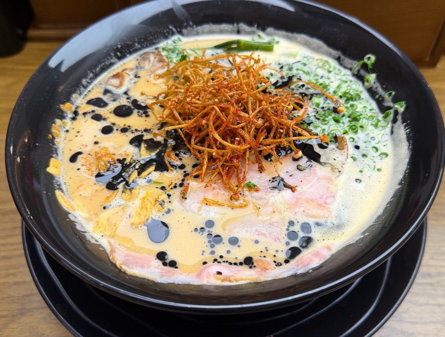 今天吃的黑蒜白鸡汤拉面