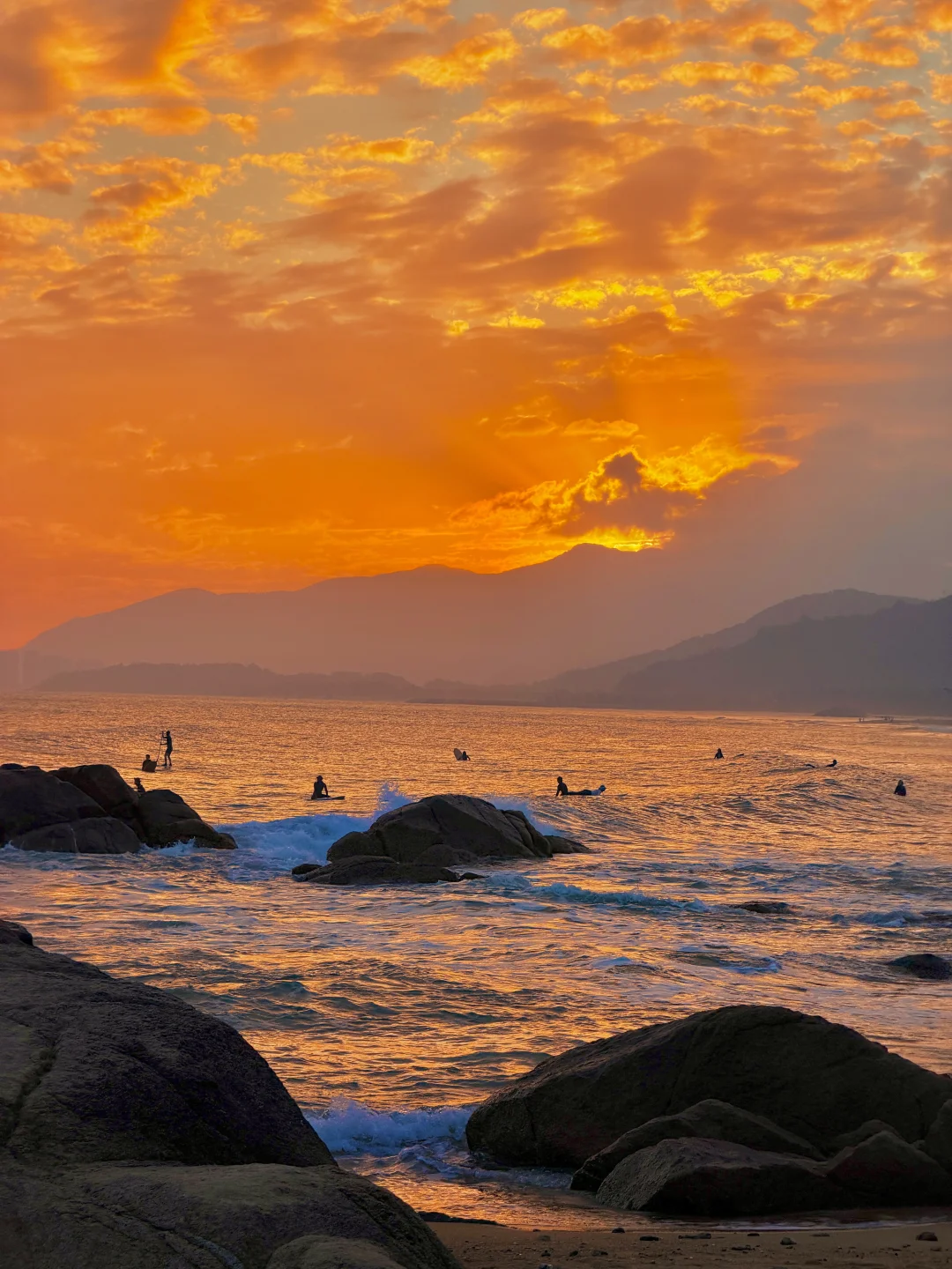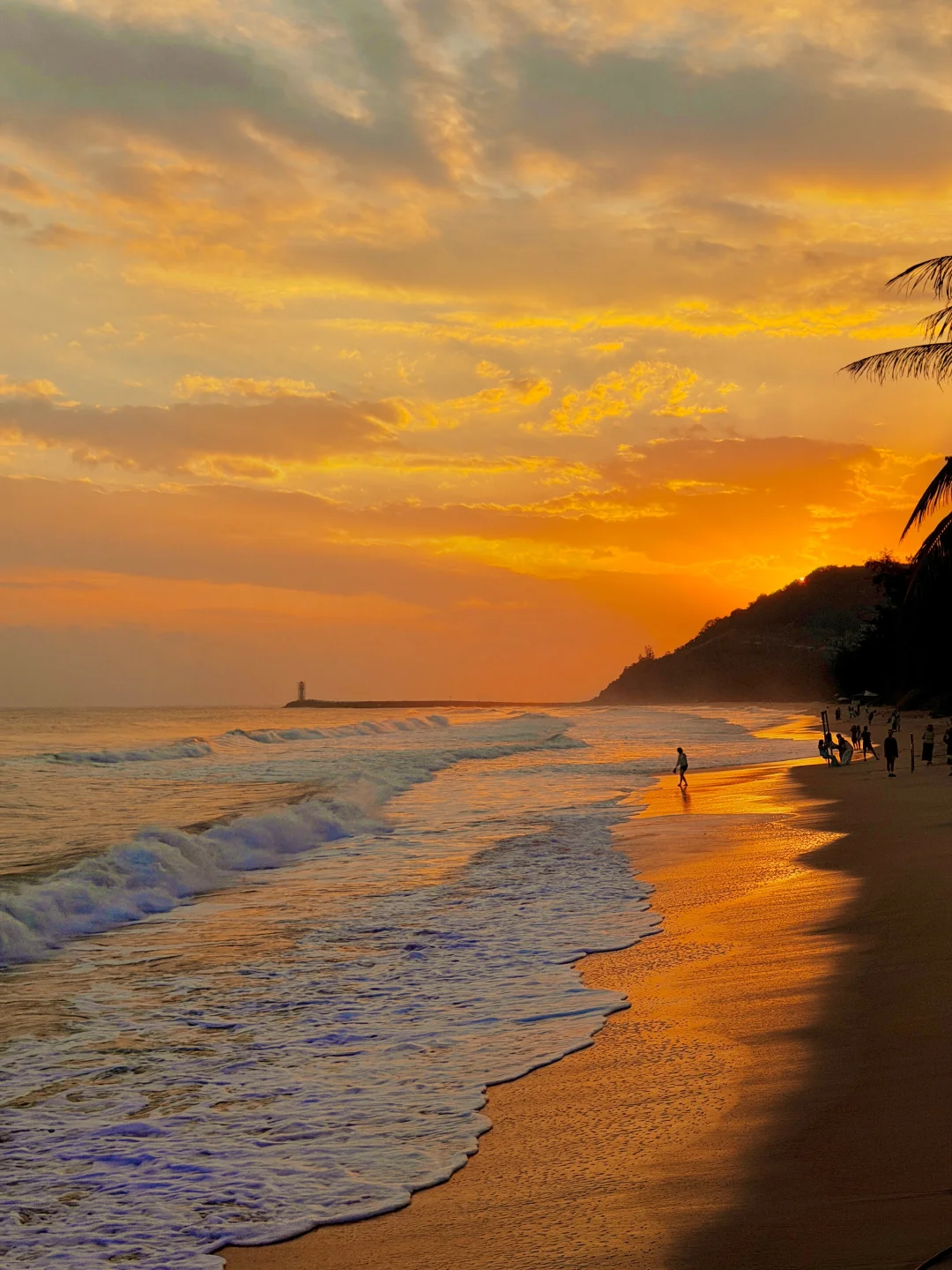 神州半岛灯塔椰林路骑个小电驴很舒服,日落橘子海