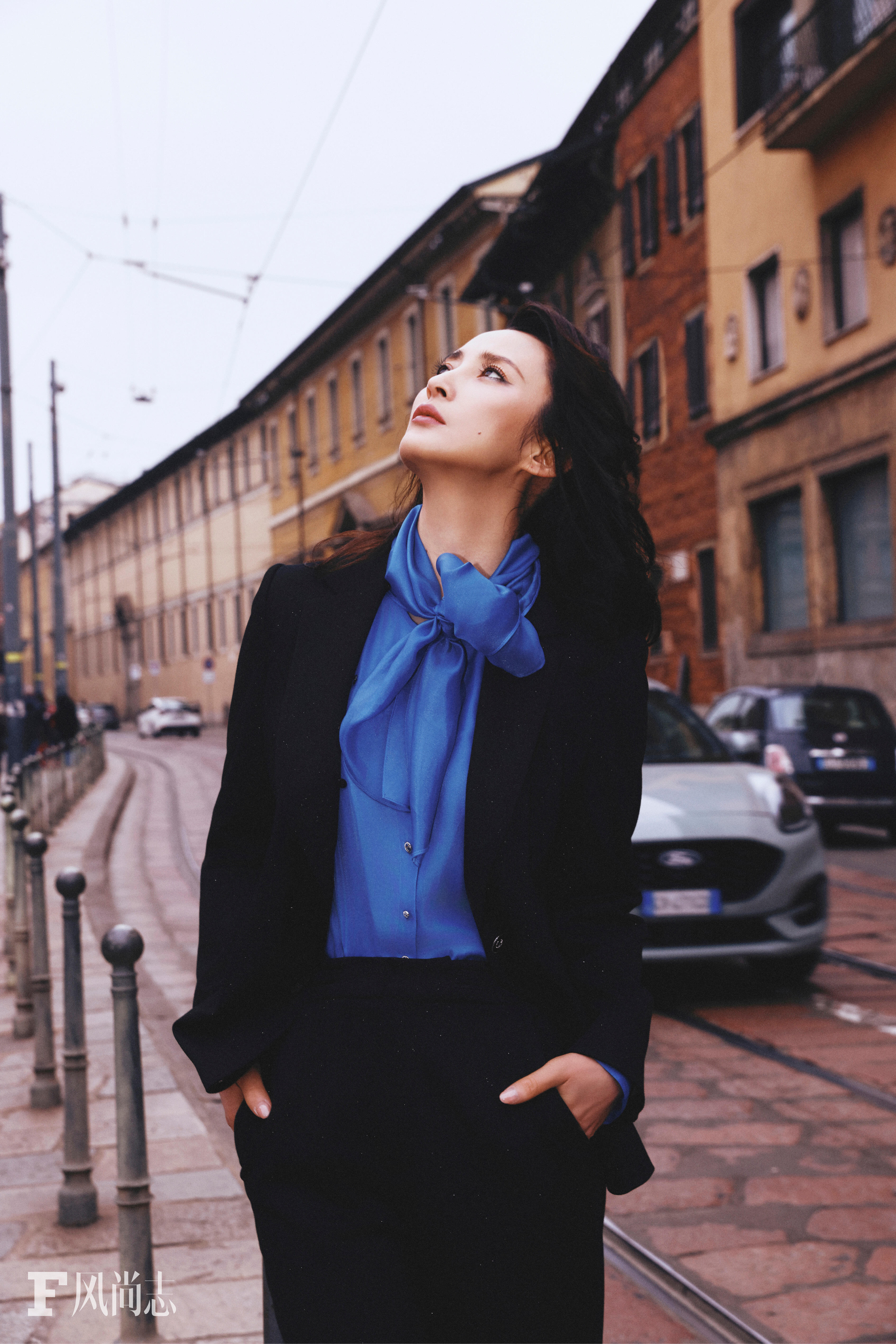 蒋勤勤 × F风尚志、时装周 这组时尚大片好鲨我,蓝色衬衣搭配黑西服好有故事感,真丝套装性感,风情万种,好像看到了顾曼璐。
