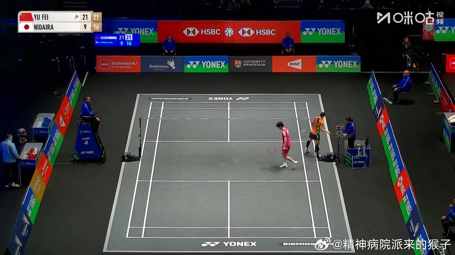 陈雨菲2比0仁平菜月(9,16)晋级2026年全英羽毛球公开赛女单八强下一轮:陈雨菲🇨🇳VS李美妙🇹🇭
