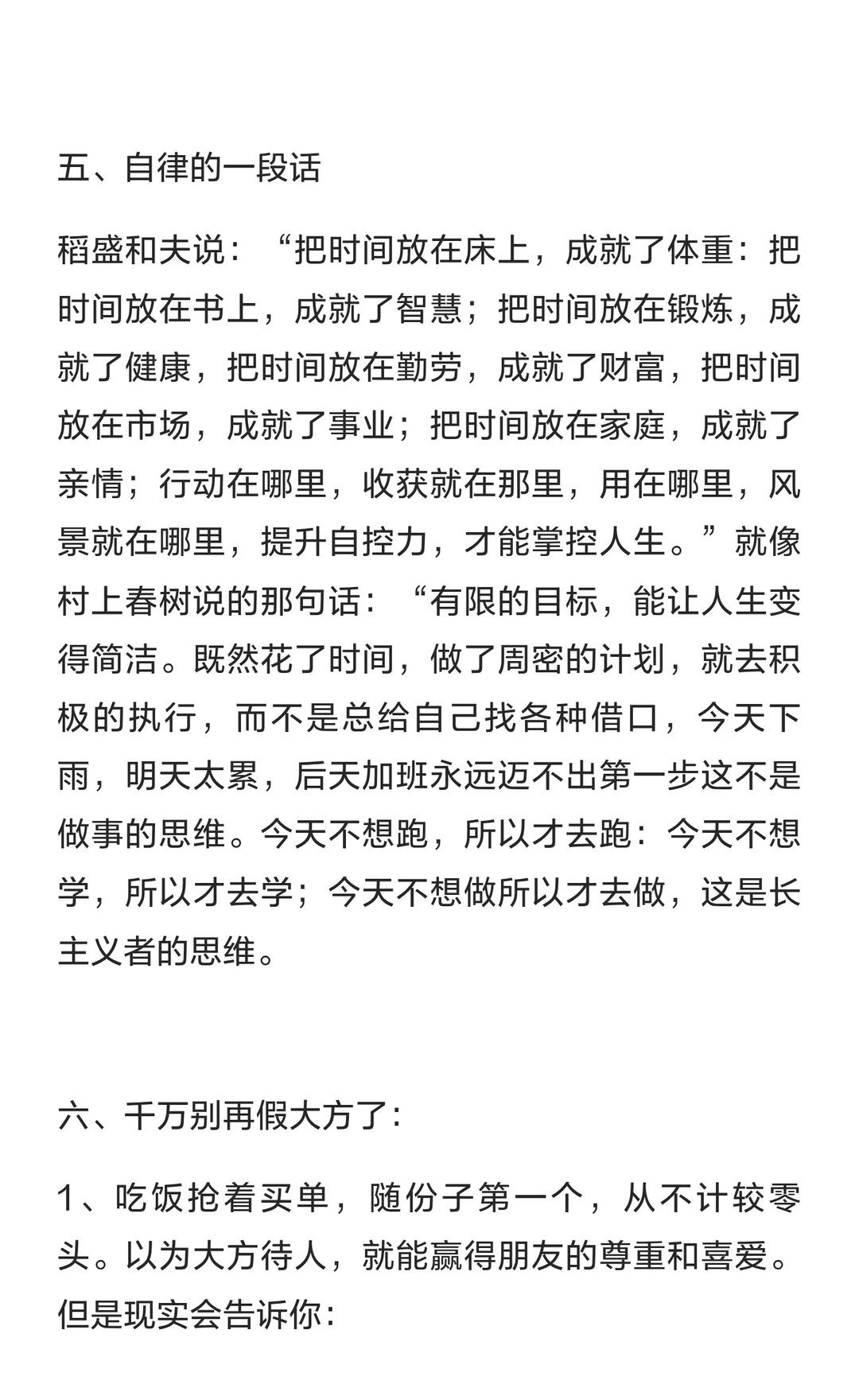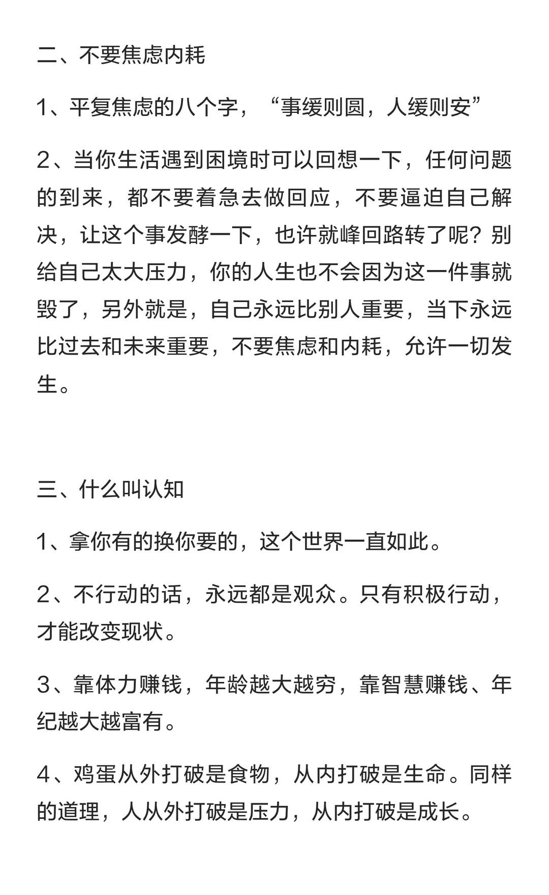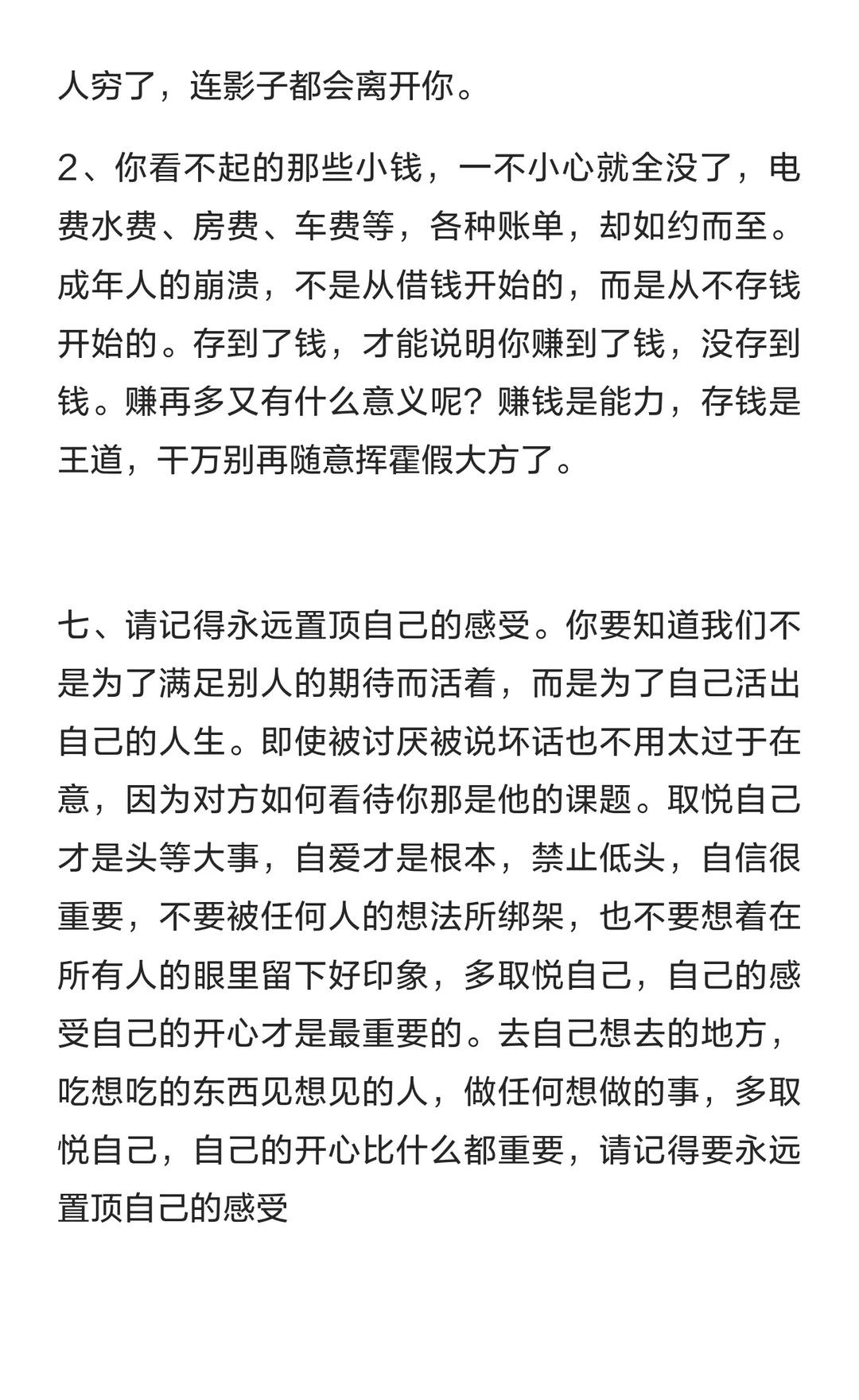 人这辈子只做九件事就行了。 研究挣钱、人性和身体,拥有自律、终身学习和运动习惯,避免焦虑和内耗,积极行动,努力成功,存钱比赚钱更重要,取悦自己,勇敢面对不完美,努力靠自己,拥抱美好人生。做大事的人 做事的态度 学会做人再去做事
