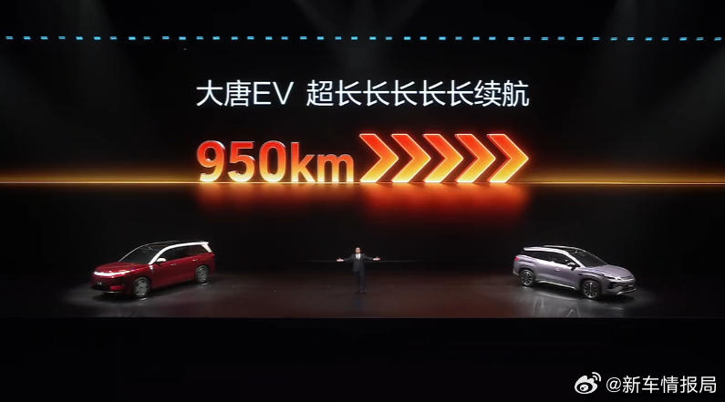 比亚迪大唐EV续航950公里 3月5日,在比亚迪第二代刀片电池暨闪充技术发布会上,比亚迪王朝网销售事业部总经理 路天公布了比亚迪大唐EV纯电续航达950km,成为全球纯电续航最长的大型SUV。