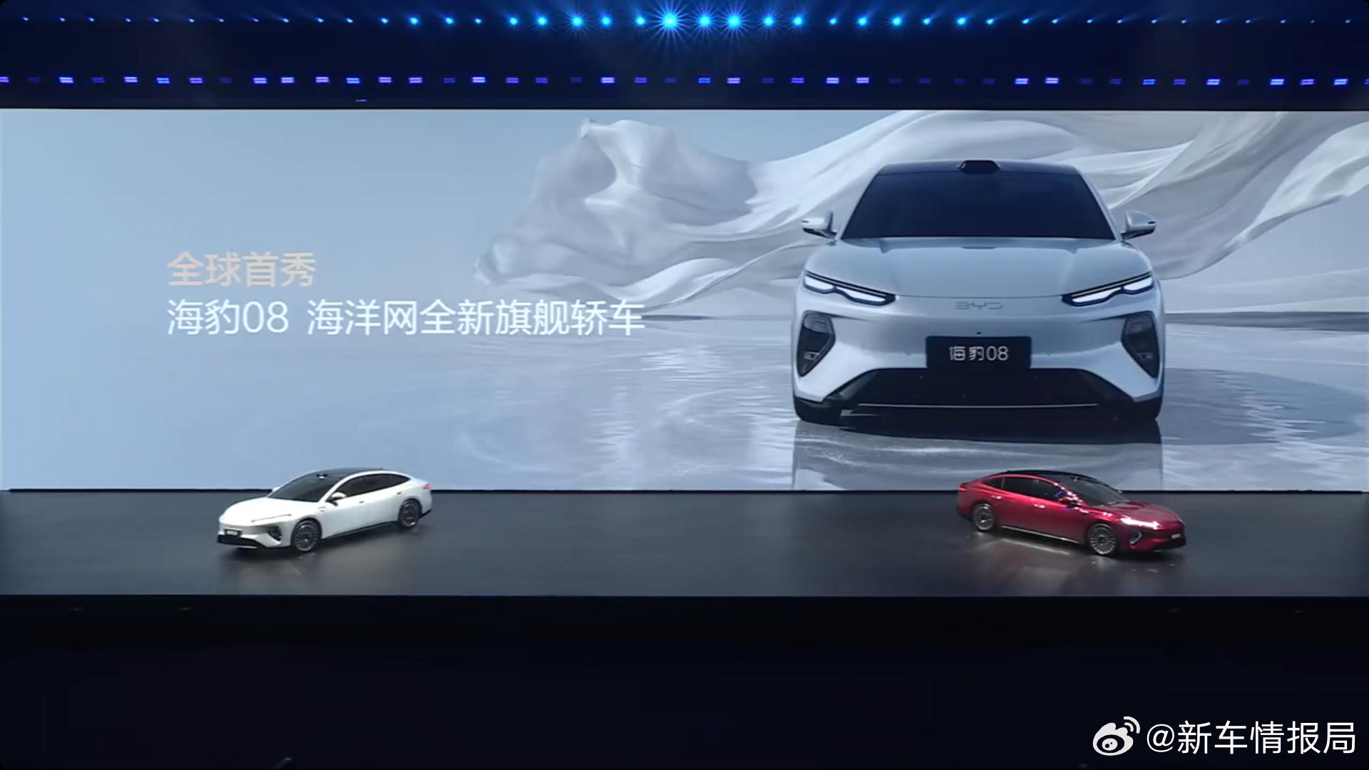 比亚迪海豹08全球首秀 比亚迪海豹08于3月5日全球首秀,新车将于二季度上市。作为海洋网全新旗舰轿车,外观延续Ocean-S概念车设计语言,车身修长优雅,采用封闭式前脸、细长大灯与半隐藏门把手,并配备车顶激光雷达,支持高阶智能驾驶系统。新车情报局