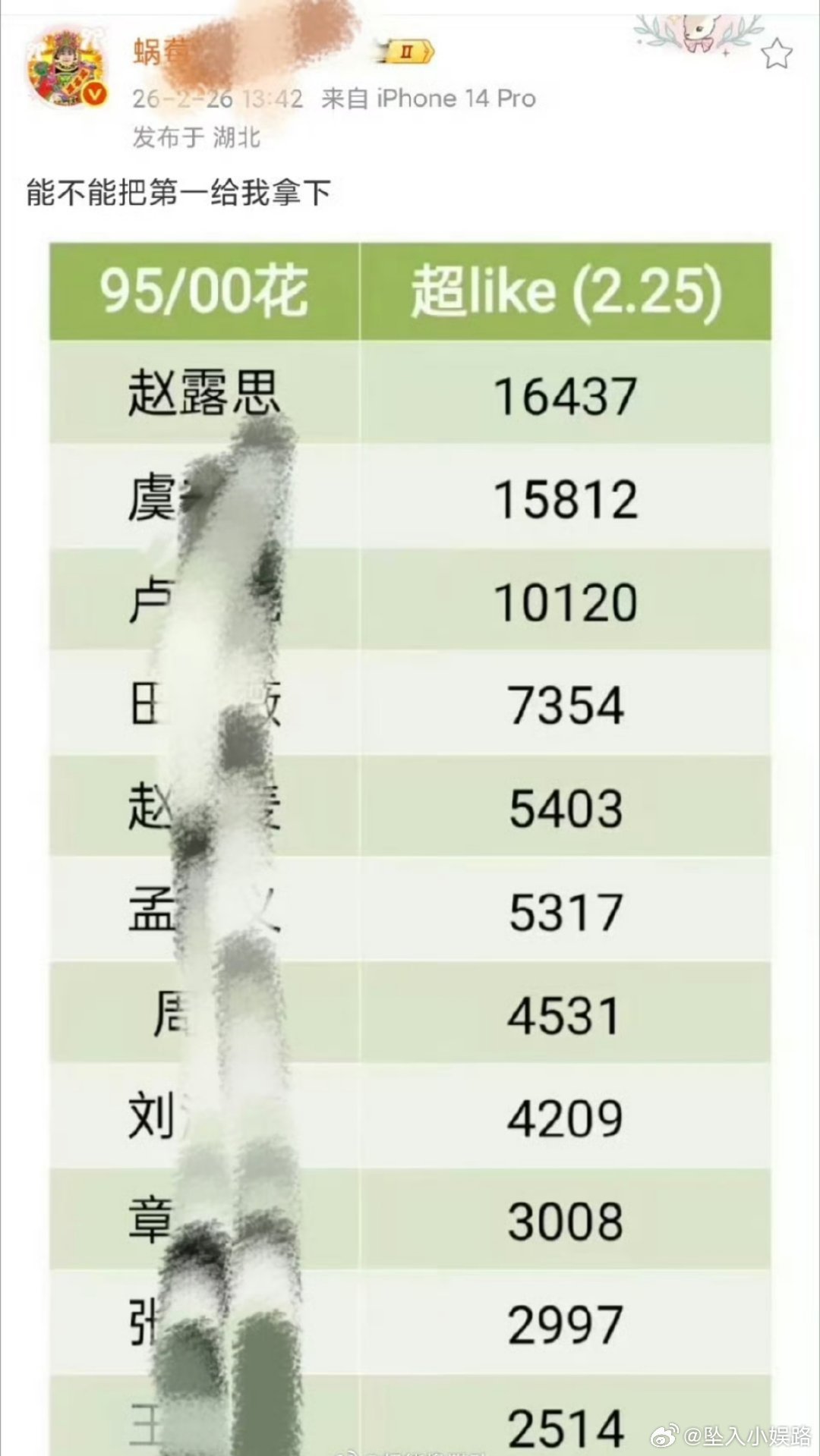赵露思第一 远超虞书欣