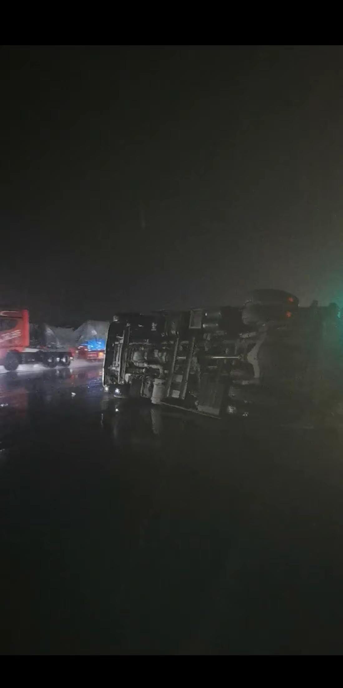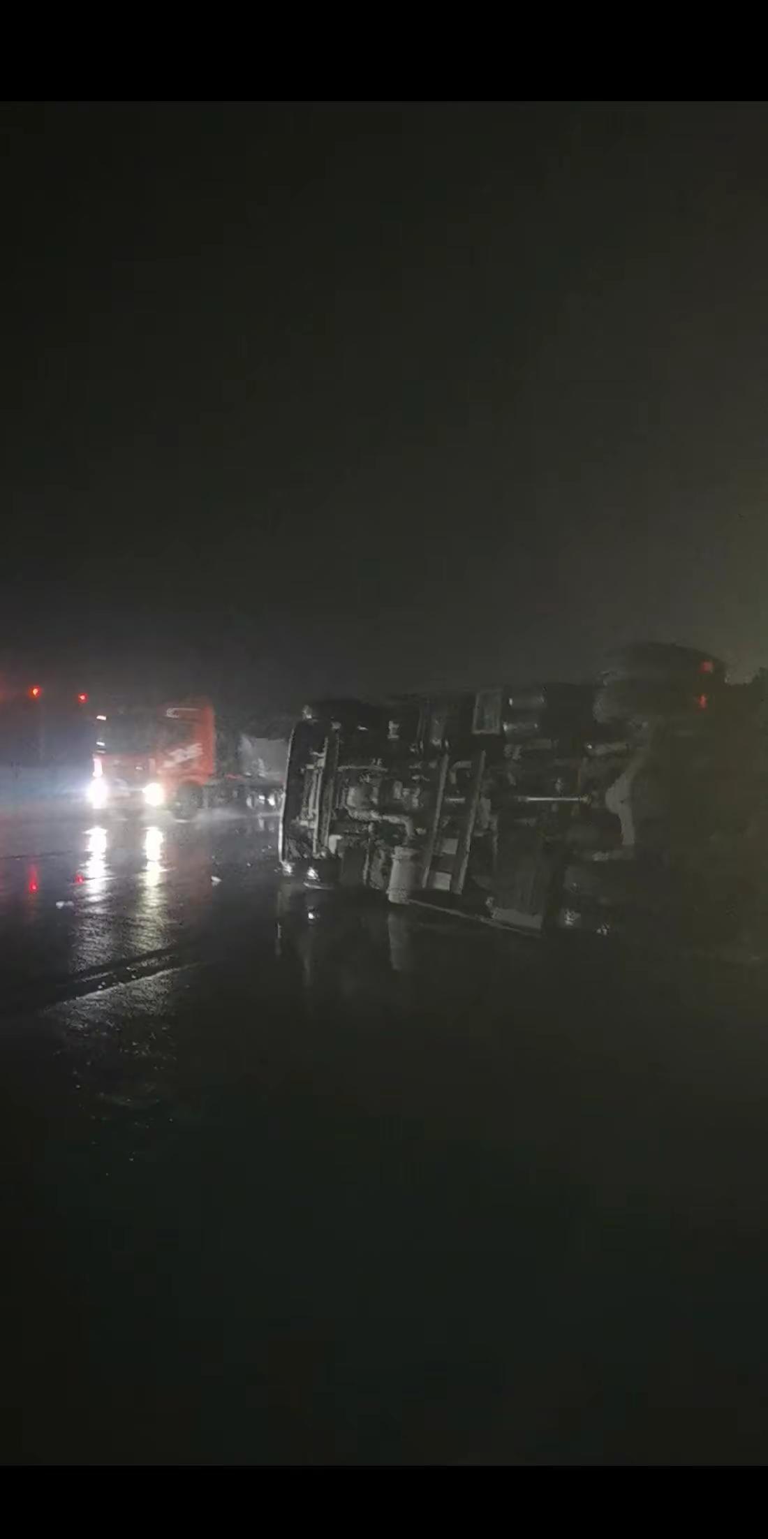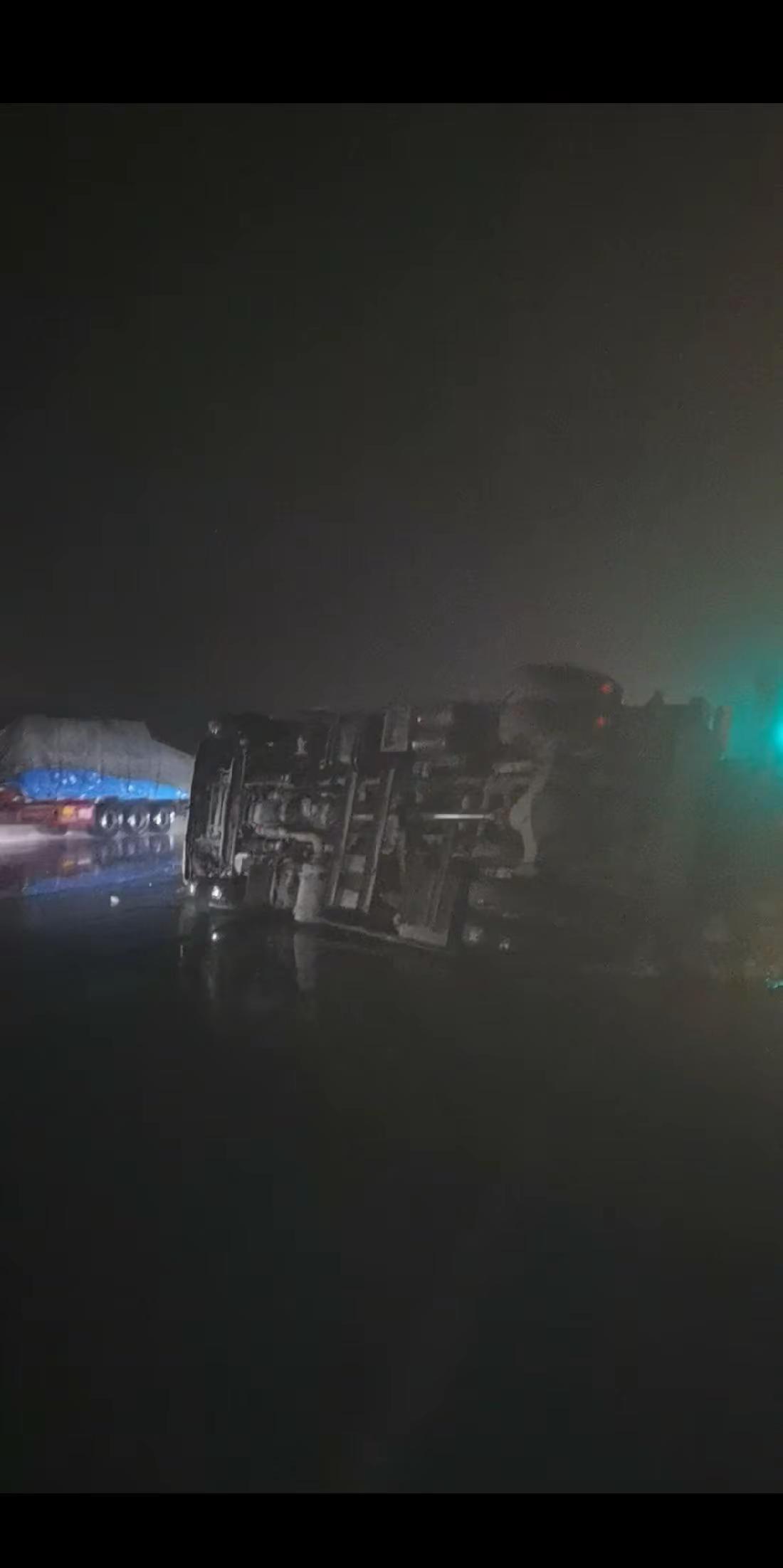 今晚在菏泽市牡丹区人民路与国花大道十字路口出现一大车侧翻事故(侧翻车辆占据三条主路),当时左拐,因道路无灯光,靠近才发现是一大车侧翻,一人员困与车内,我们即刻进行救援,第一时间于车内人员进行交流救护(救护后安置我们车辆后座进行取暖),并拨打122与120,穿着反光衣并与100米处放置三角警示牌,车辆掉头开启危险警告灯,大灯灯光照射侧翻车辆警示其他车辆!等待家属、交警和120的到来,家属和交警同志先后到达进行处理现场,120完成救护,家属将车辆挡于事故车外开启大灯和危险警告灯,警示牌放置100米处,将我们车的反光衣送给他们进行等待车辆救援!此时我们衣服以湿透,同在蓝天下,携手为公益!