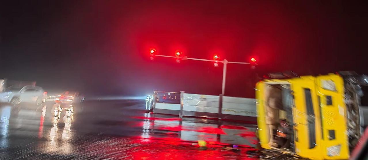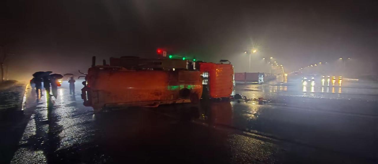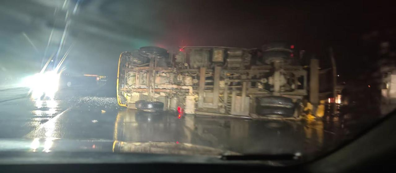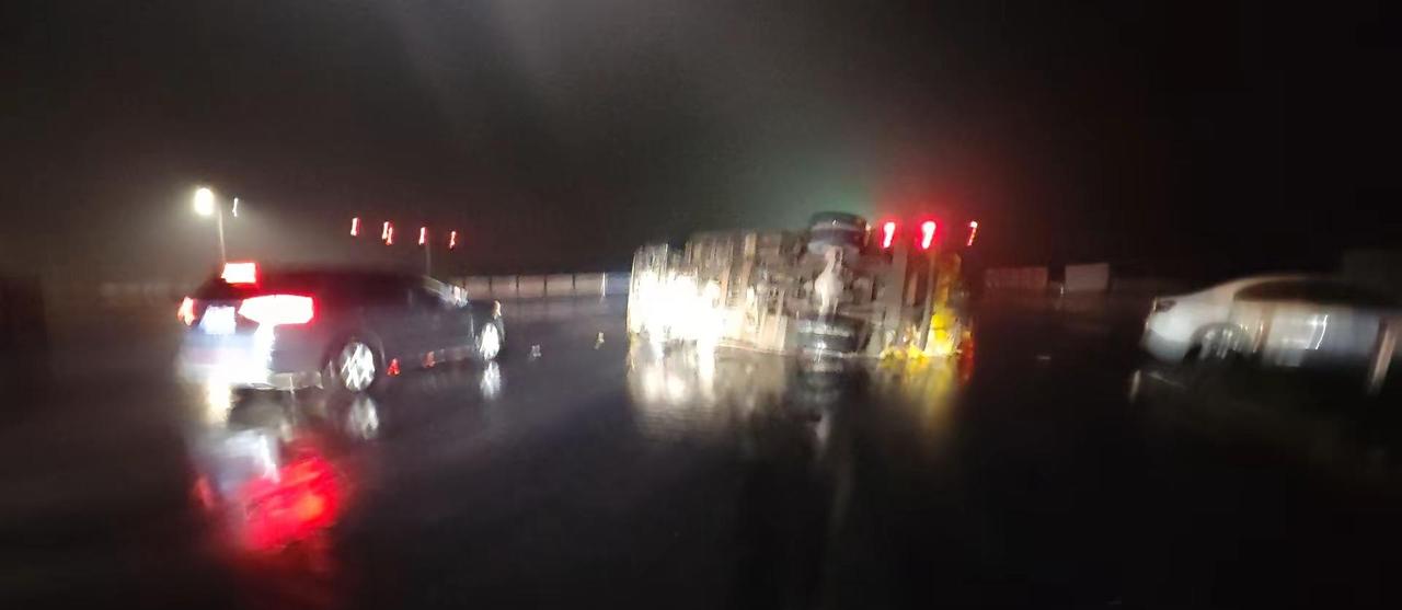 今晚在菏泽市牡丹区人民路与国花大道十字路口出现一大车侧翻事故(侧翻车辆占据三条主路),当时左拐,因道路无灯光,靠近才发现是一大车侧翻,一人员困与车内,我们即刻进行救援,第一时间于车内人员进行交流救护(救护后安置我们车辆后座进行取暖),并拨打122与120,穿着反光衣并与100米处放置三角警示牌,车辆掉头开启危险警告灯,大灯灯光照射侧翻车辆警示其他车辆!等待家属、交警和120的到来,家属和交警同志先后到达进行处理现场,120完成救护,家属将车辆挡于事故车外开启大灯和危险警告灯,警示牌放置100米处,将我们车的反光衣送给他们进行等待车辆救援!此时我们衣服以湿透,同在蓝天下,携手为公益!