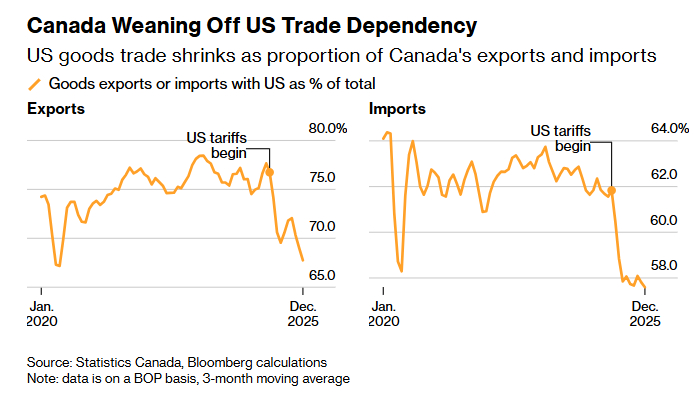 与此同时,加拿大从美国进口的商品也减少。去年从美国进口下降2.9%。