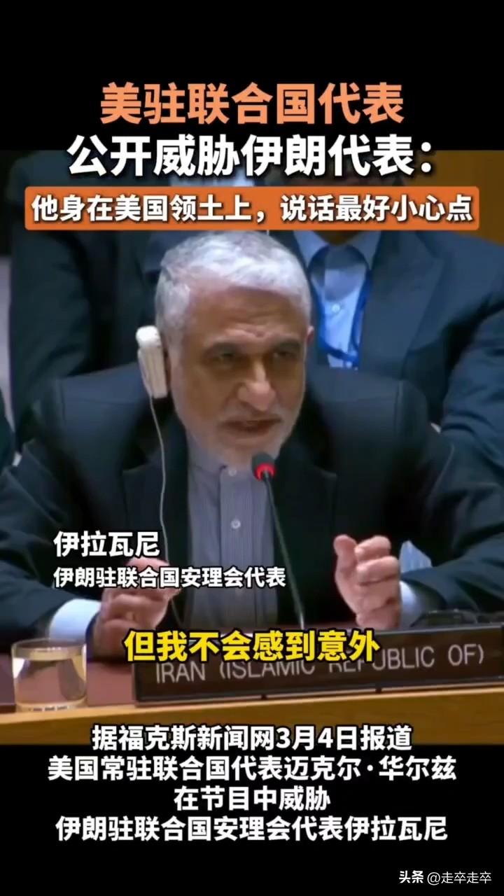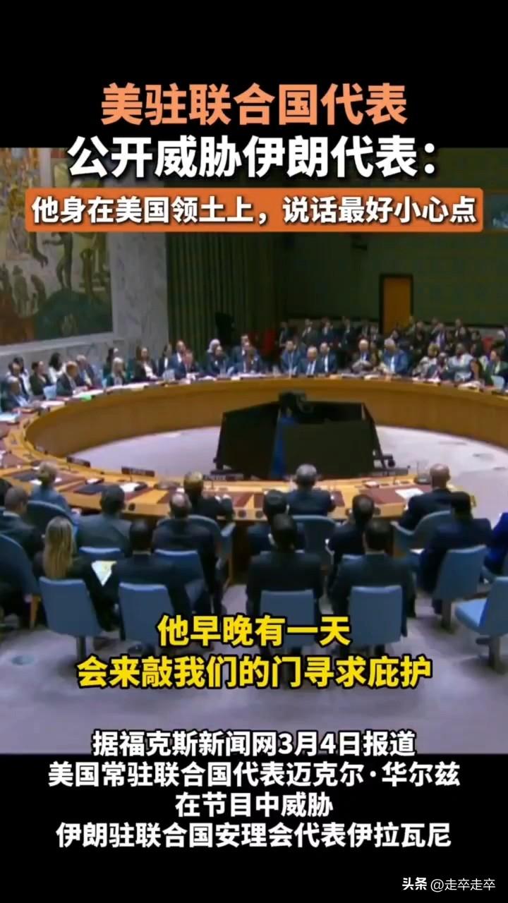 一国代表如此言论算不算是“流氓”! 美驻联合国代表华尔兹在电视节目中公开警告伊朗代表伊拉瓦尼身在美国领土上说话要谨慎! 联合国总部虽位于美国,但依据《联合国总部协定》和《维也纳外交关系公约》,美国作为东道国必须保障外交代表安全及言论自由,《联合国特权和豁免公约》(1946年)进一步确认了联合国及其工作人员在执行公务期间享有的安全与豁免保障。 美国这番赤裸裸的威胁,把“流氓”嘴脸暴露无遗。这样的情况导致联合国机制陷入瘫痪。美国动用安理会否决权阻挠追责决议,秘书长古特雷斯谴责侵犯主权却无力行动。伊朗代表直言,求助联合国说明我们已孤立无援。这就导致伊朗宣布封锁霍尔木兹海峡(全球26%石油运输通道),并对中东27个美军基地发动导弹反击。黎巴嫩真主党、也门胡塞武装进入战备,中东濒临区域性战争。 美国此举践踏外交豁免权、将联合国会场工具化、实施双重标准等,毒化全球外交生态。中国、俄罗斯在安理会明确反对美以军事行动,强调武力加剧仇恨,对话才是出路,沙特等中东国家拒绝为美以背书,美国却一意孤行,凸显联合国在治理国际的问题上,却在强权前的失效。 个人比较关注的重点是一旦美军在伊朗事情上出现了重大损失(大型舰艇被击毁)人员出现大规模的伤亡,这群被犹太复国主义操纵的疯子会不会采用核报复!