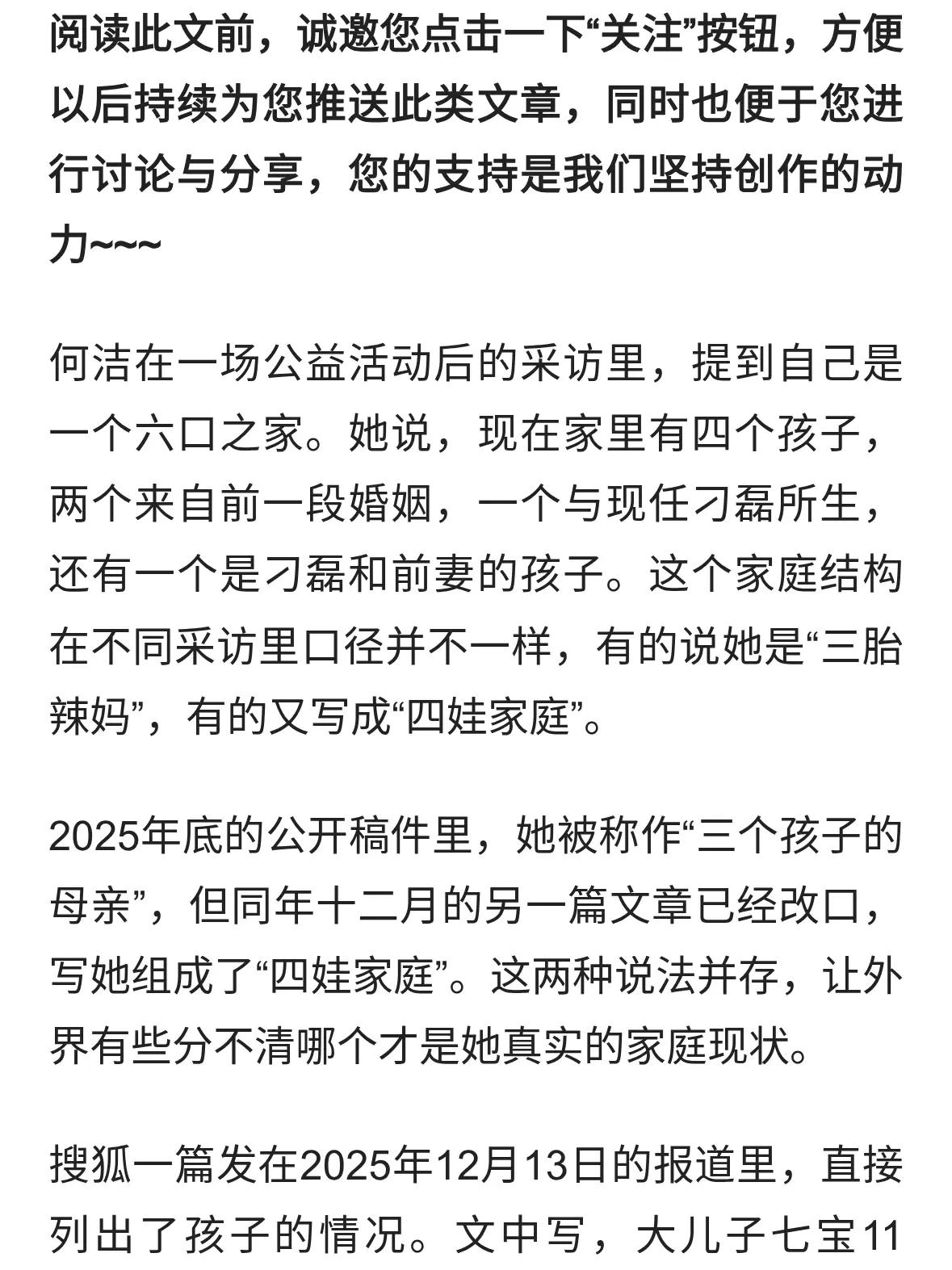 何洁素颜照,是大多数八零后的现状,我们许多人天天照镜子,一般都没有意识到自己有多老,但是看看自己同龄人和同学,会感叹他们断崖式衰老。其实大多数情况下,自己在别人眼里也是老的不像样子了。 何洁四个孩子都要她来抚养,四个孩子两个爸,两个妈,这家庭挺复杂,有点像《家有儿女》的情况。像他们明星,孩子们都得读私立学校吧,都得报些班吧。吃的东西也不能含糊。一个月十来万应该是维持他们的体面的需要。 其实这就是为什么许多人活的累的源头,许多人其实命运并不好,也就是家庭出生不好,体质也不行,但是要强行往高阶层里凑,这样一般就要殚精竭虑,最后提早过度损耗精气神。结果就是早衰。
