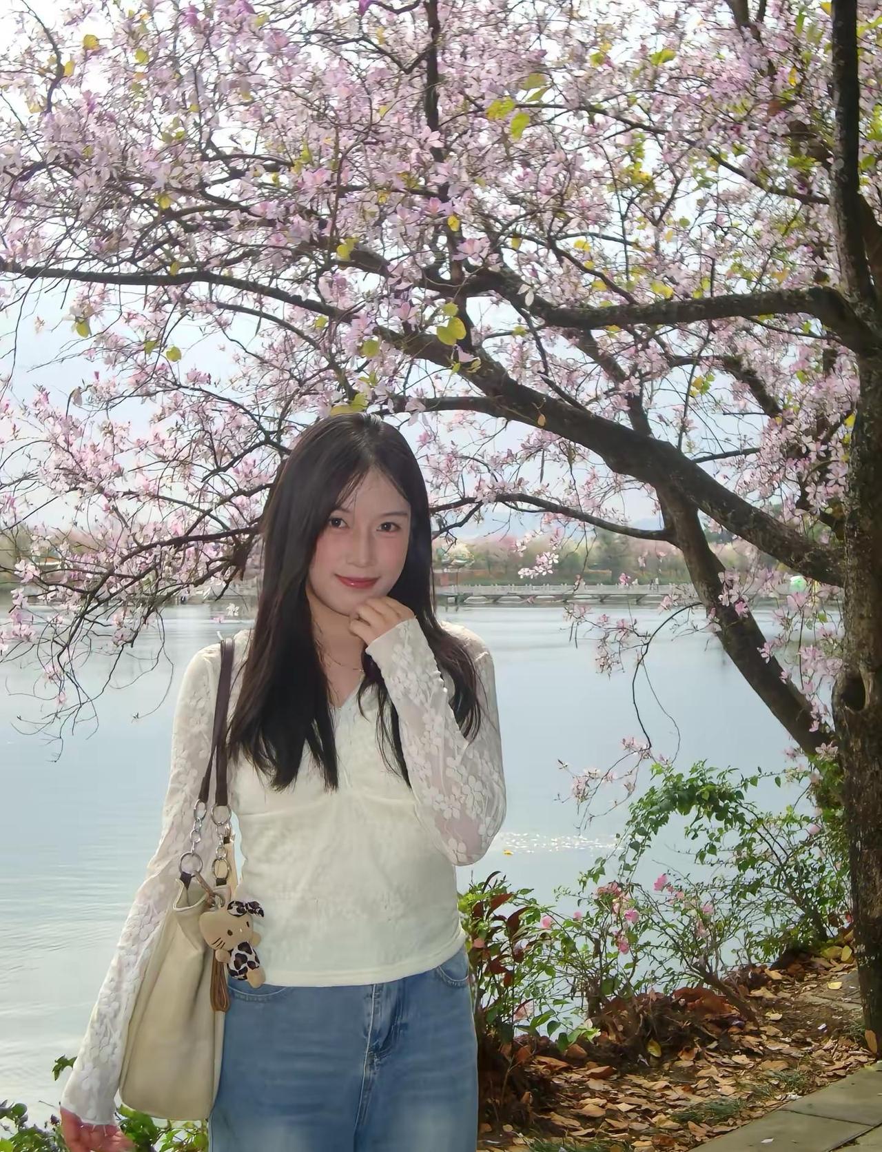 春风拂过紫荆花枝,花瓣轻落如雨,我站在花影里,像一幅被时光轻轻铺开的画。绿色外套