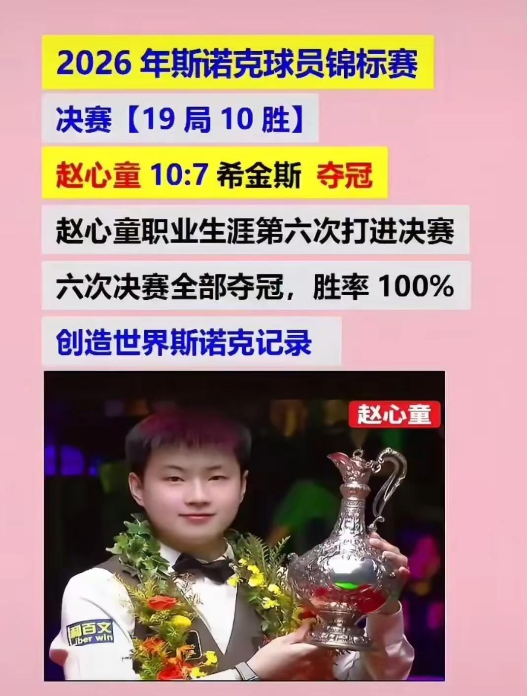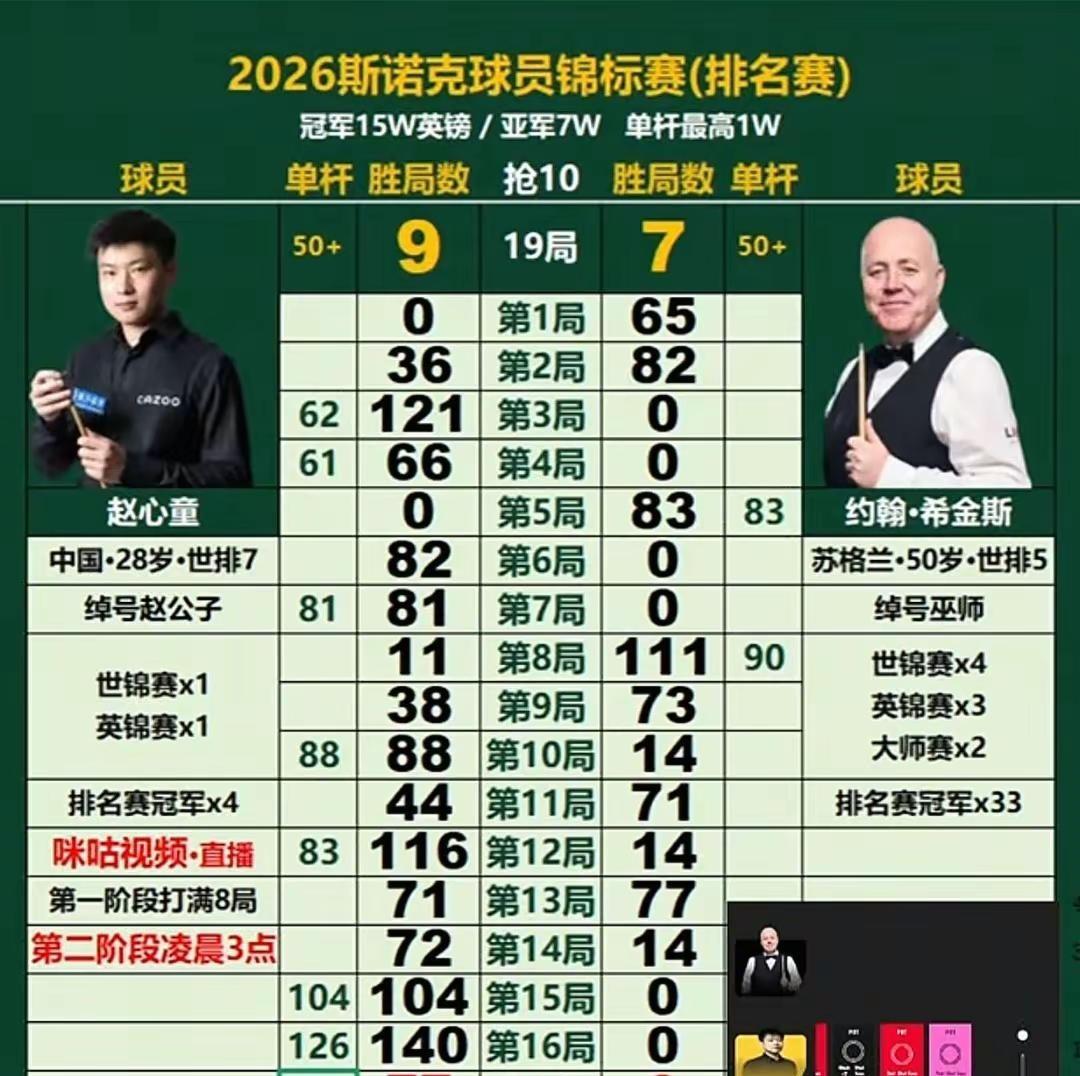 恭喜赵公子2026球员锦标赛夺冠,世界排名进入前5。