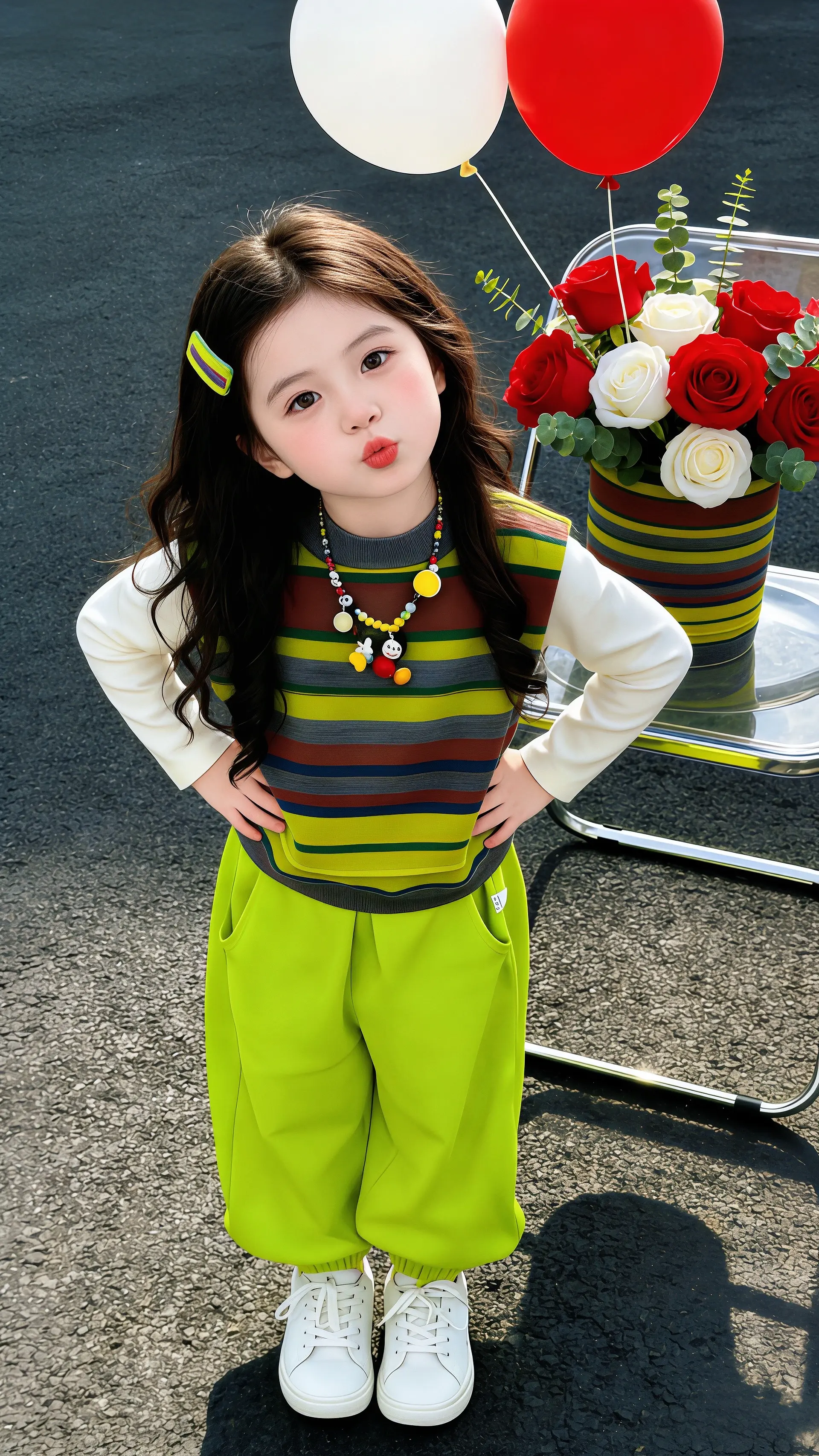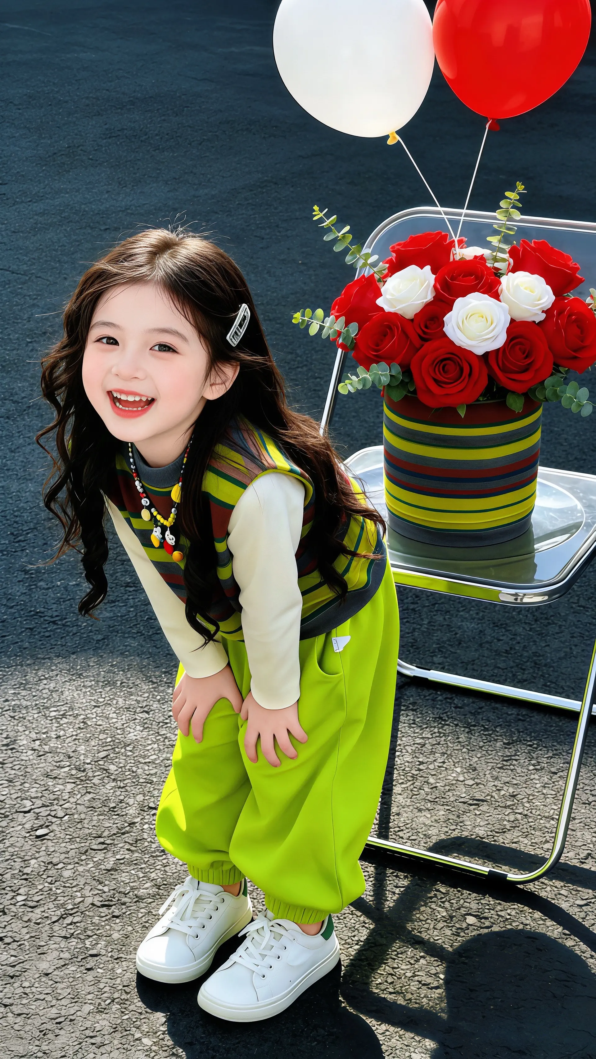 娃弯着腰笑开花,灰开衫软乎乎像“裹了片薄雾”,粉纱裙晃起来像“盛着团樱...