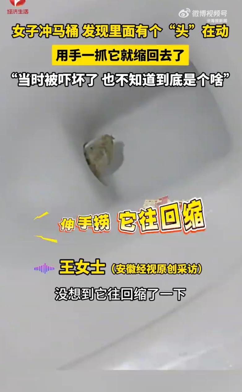 这是什么东西?黑龙江伊春,女子在家冲马桶,结果低头一看,魂都快吓飞了,网友:这是把现实过成了恐怖片啊。 当天,王女士像往常一样按下了马桶冲水键,却发现里面有个东西死活冲不掉。 起初她没戴眼镜,瞅着那颜色灰扑扑的,还以为是块塑料布,就特意回屋戴上眼镜,想着伸手把它捞出来。 结果手指头还没碰到,那东西“嗖”地一下就缩回了管道里,王女士吓了一跳,等了一会儿,发现它又探出头来。 她又不信邪地试着抓了一次,结果那东西遇触即缩,反复了几次,这下王女士彻底看清了,根本不是塑料布,分明是个活物的脑袋,瞅着跟蛇头一模一样。 王女士当场被惊出一身冷汗,死活不敢再动,那东西也就没再浮上来 。评论区里全炸了,大家直呼这是“童年噩梦照进现实”。 有网友说,小时候在树底下玩,看见树上挂着根黄色水管,想跳起来抓,结果那“水管”直接俯冲下来,是一条1.2米长的蛇,吓得记了一辈子。 还有人分享,以前住底楼,刚进厕所就跟马桶里钻出的老鼠对视了两秒,吓得它缩回去,自己当场决定搬家买顶楼。 更多人是后怕:这要是上厕所正起劲,屁股被咬一口咋办? 其实这种事并非首次,去年江苏周女士如厕时,就被马桶里钻出的黄绿色蛇顶到了臀部,婆婆赶紧冲水才处理掉。 说白了,这种事多发在老旧小区的底层,管道直通化粪池或者外面的沟渠,蛇虫鼠蚁很容易顺着管道钻进来。 万一被毒蛇咬了,十来分钟就能出现牙龈渗血、凝血障碍,立即去医院检查。低层住户平时要留意,墙缝要填堵死,夜间上厕所最好先开灯检查下马桶。 真碰上这种不明活物,千万别学这位女士徒手去打捞,优先寻求专业处理。 生活里的意外,往往藏在最隐秘的角落。