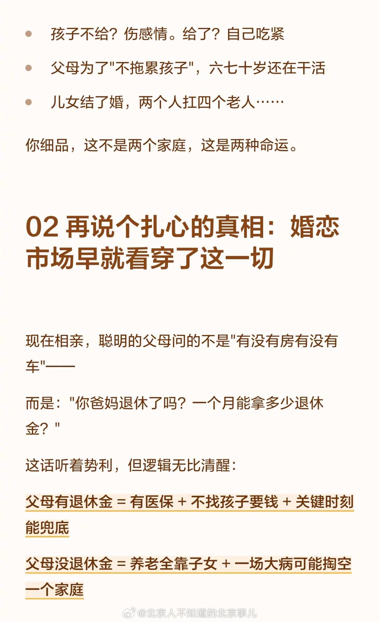 【琅河财经】父母有没有退休金,决定了你过哪种人生? 西城海淀不少家里人是两个老人每个人都有两万左右退休金,医疗也是完全不用自己掏。哪怕家里只有一个有,和一个月一百多的比,像是两个世界