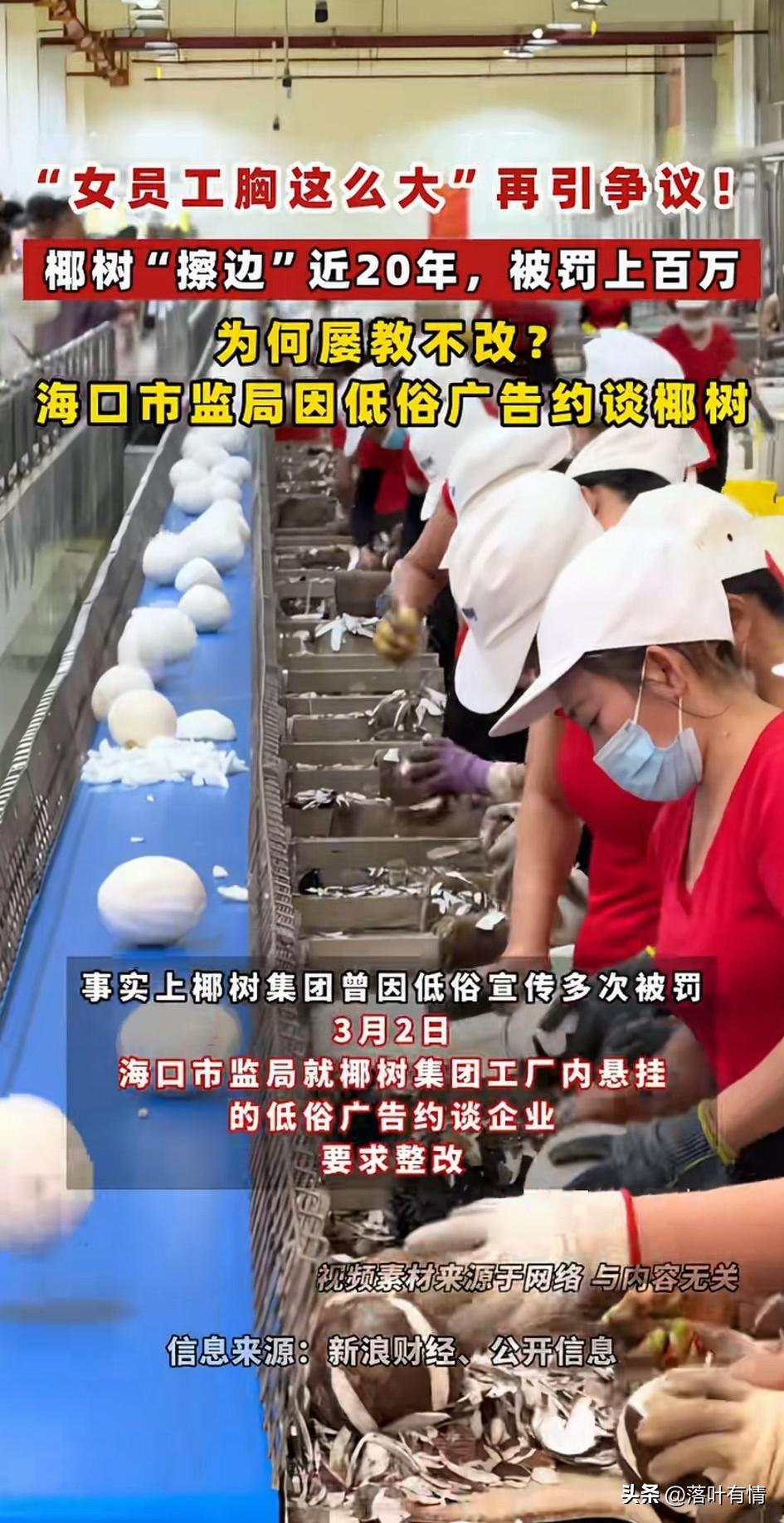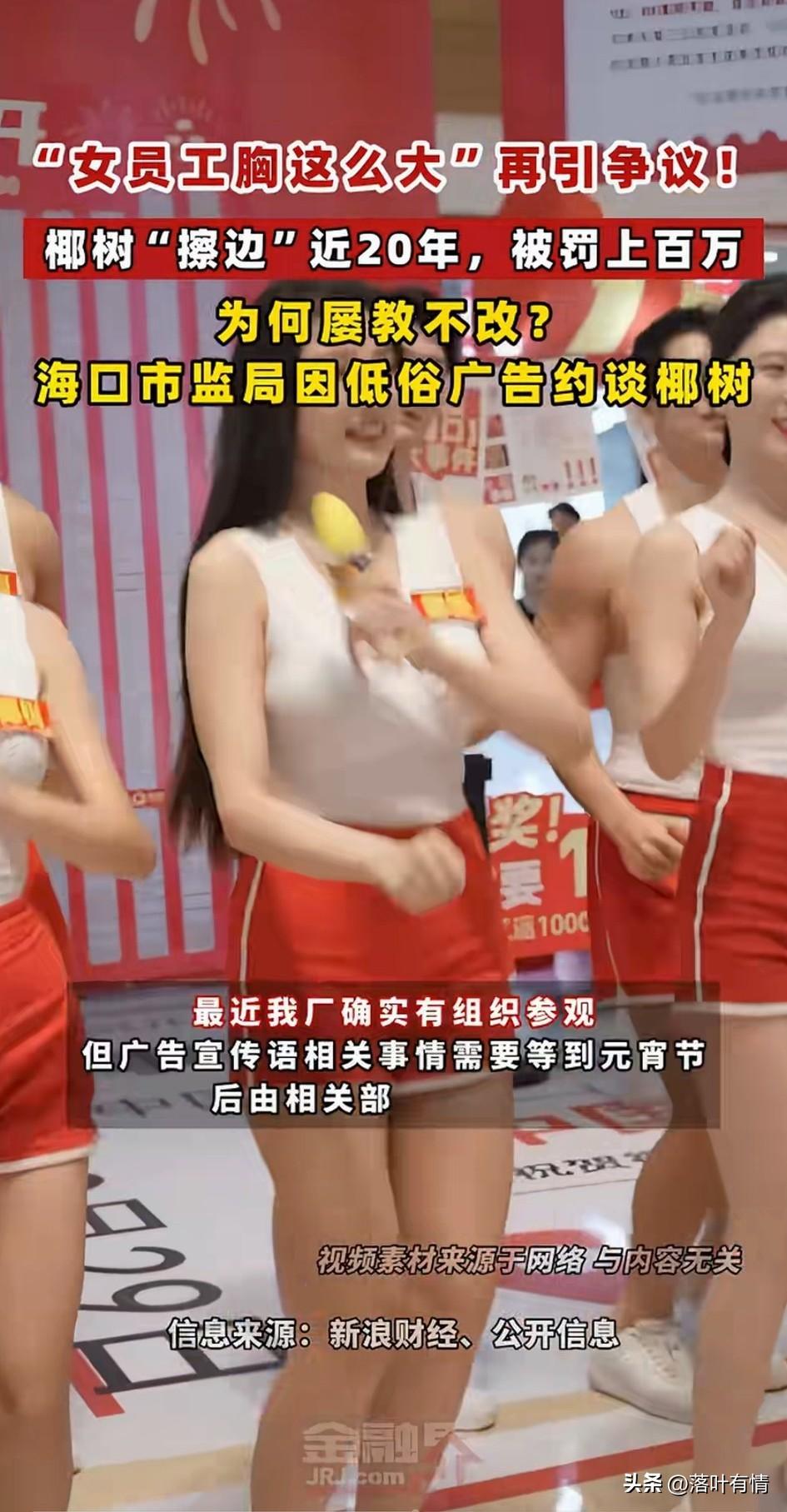 女员工胸这么大, 椰树广告再次引发热议, 每年椰树总能上热搜, 总是因为它的低俗营销, 不是因为椰树老板多精明, 而是因为椰树老板太懂人性了, 你放个正常的宣传广告, 花个上百万的广告费, 还拿不到想要的结果, 还不如请几个漂亮女孩跳跳舞, 再找几个健身房的男教练秀秀肌肉, 也花不了上百万, 就算被相关部门罚了40万。 怎么算都是划算的, 一个花40万就能上的热搜, 精明的生意人都知道怎么选, 为什么每年被海口相关部门约谈? 它还是会出这样的广告, 答案就在这里了, 大家喜欢椰树的广告吗? 椰树海报 椰树营销鬼才 甜椰树广告 椰树牌椰树牌 椰树好美