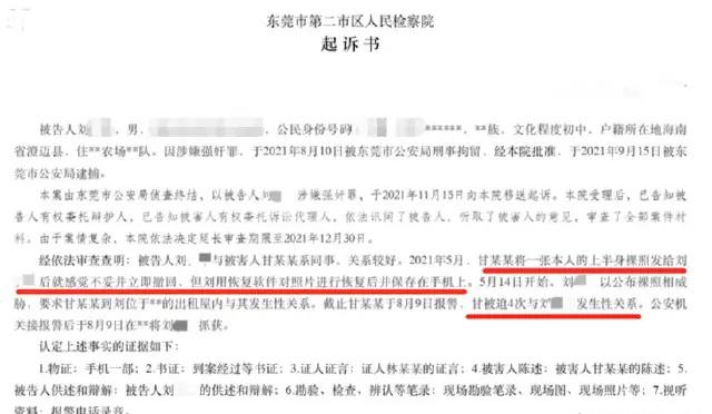 广东,一个33岁人妻给24岁的男同事发了身体照片,发完之后立即撤回,但是却被男同事给截图了。3个月内,男同事不断拿着照片威胁,一直邀约女子出来开个房间,在发生了4次不正当的男女关系之后,女子感觉这样的情况只会永无止境,于是就选择去报了警。经过调查发现事实确定,男同事这下悲催了。 参考来源:澎湃新闻发布了这则新闻(中国检察网公布) 广东东莞一家公司里,33岁的甘女士和24岁的男同事刘某,平时关系处得不错。工作上有啥事,两人常互相帮衬,微信上也聊得挺热络。这种同事间的熟络,让甘女士放松了警惕。 2021年5月的一天,一次私下的聊天中,甘女士一时冲动,通过微信给刘某发去了一张自己的私密照片。信息发出去的瞬间甘女士就后悔了,她赶紧点了撤回。她天真地以为,就像没发过一样。 她没想到,屏幕那头的刘某,不仅看到了照片,还迅速用专门的恢复软件,把那张已经撤回的图片,存进了自己的手机里。从5月14日开始,刘某不再是什么热心的年轻同事,而是一个拿着把柄的威胁者。他告诉甘女士,如果不听他的,就把照片公开,让她身败名裂。甘女士害怕照片流传出去,害怕家庭破裂,害怕周围人的眼光,最后不得不妥协。 接下来的三个月,对甘女士来说是一场醒不来的噩梦。在刘某的胁迫下,发生了四次不正当男女关系。每一次,她都活在巨大的屈辱和恐惧里,感觉自己在往深渊里坠。她求过刘某删掉照片,可对方只是冷笑,把照片当作长期控制她的工具。 忍了又忍,怕了又怕,甘女士终于意识到,沉默和妥协换不来解脱,只会让勒索永无止境。2021年8月9日,她鼓足勇气走进了派出所报警。警方当天就将刘某抓获。经调查,事实清楚,证据确凿,刘某因涉嫌强奸罪被检察机关提起公诉。 一张冲动下发送又撤回的照片,一次对他人隐私的恶意恢复和保存,最终演变成赤裸裸的犯罪。在数字时代,任何一次轻率的信任交付,都可能被技术放大,成为伤害自己的利器。同事间的友好边界一旦模糊,就可能给心怀不轨者留下可乘之机。 甘女士的遭遇令人同情,她为自己的冲动付出了沉重代价。而刘某的所作所为,则是对法律和人性的双重践踏。他以为抓住了别人的把柄就能为所欲为,最终等来的是法律的严惩。私下里无论关系多好,都要守护好自己的隐私底线。无论遇到多大的威胁,报警才是最正确、也是唯一的路。 各位读者你们怎么看?欢迎在评论区讨论。