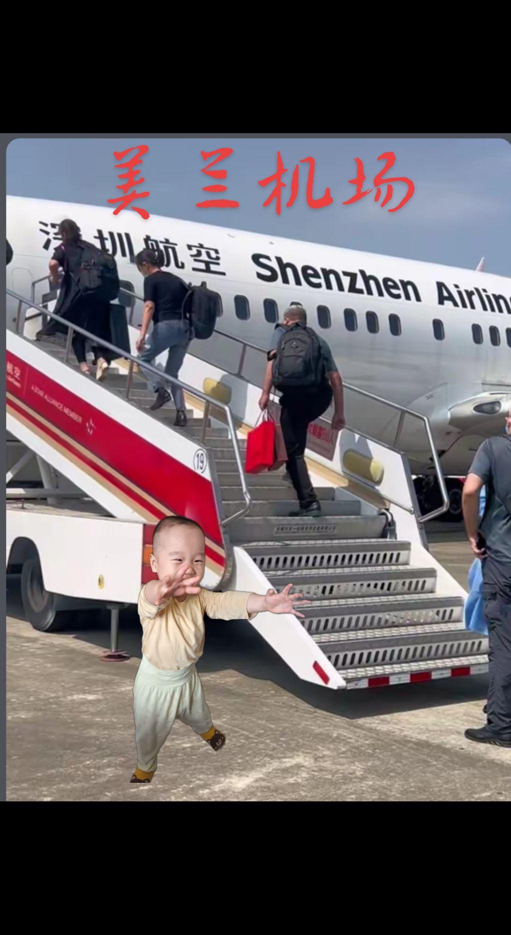 乐乐坐飞机回仓洲,在上飞机留念,向往神鹰一一