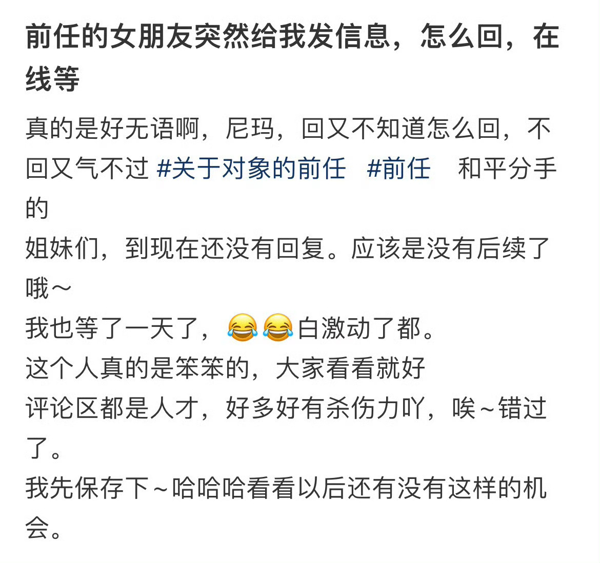 前任的女朋友突然给我发信息,怎么回,在线等