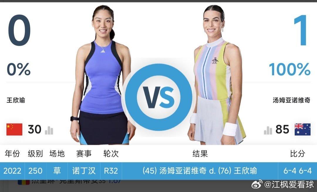05:00左右 WTA1000印第安维尔斯站女单第2轮王欣瑜🇨🇳 vs 汤姆亚诺维奇🇦🇺