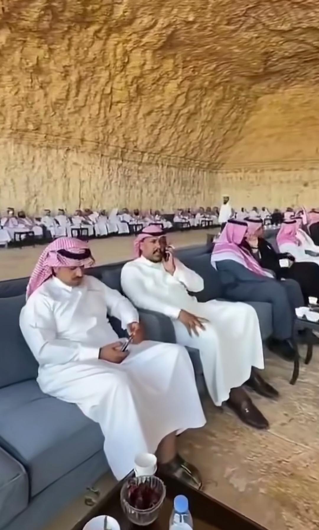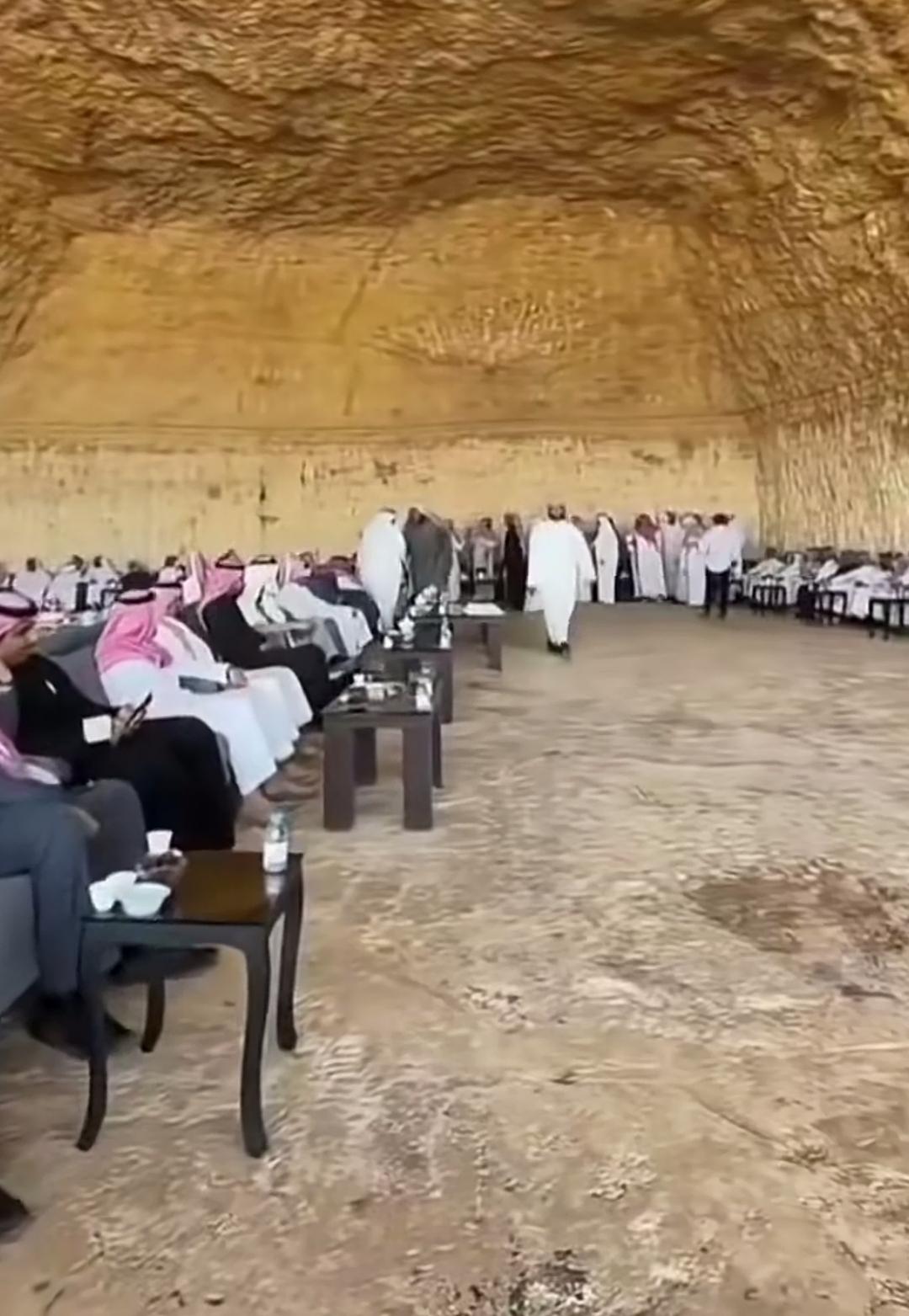 这可不是人家的防空洞! 昨天看到一段阿拉伯人在巨大的岩洞中聚会,很多网友还以为是为了躲避导弹! 其实,这种天然岩洞在阿拉伯半岛上并不罕见,尤其在沙特西北部的埃尔奥拉地区,还有靠近约旦边境的塔布克地区,都有这种天然洞穴分布。 阿拉伯人,包括一些王室成员,会在这里举办大型社交活动。 这也是人家的习俗。 沙特