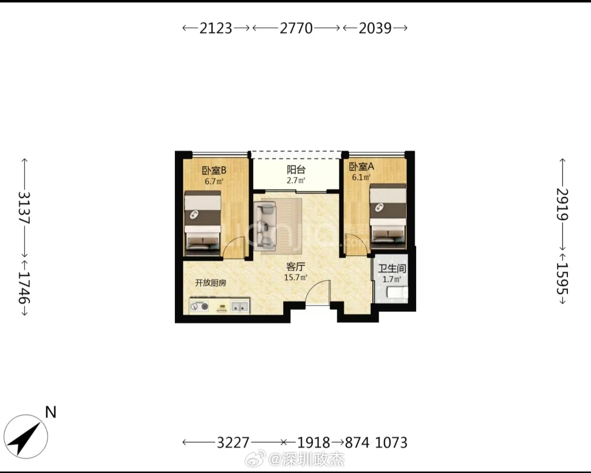 蛇口50多平2房公寓,200万出头,一个月收租7000元。