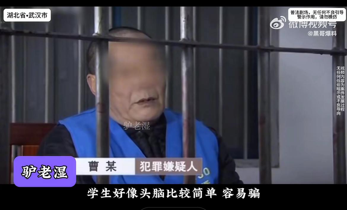 武汉一老头冒充特工,在大学校园骗财骗色5名女大学生。老头已经60多岁,其貌不扬。走在大学校园里,看起来像个捡垃圾的,可就是他这个鬼样子,却把5个女大学生弄的晕头转向,乖乖听话。 老头第一步在大学闲逛,物色落单的女大学生,自称国家一级特工在校园执行任务,学校有间谍,给大学生看证件,耳麦里突然传来执行任务的要求,需要剧情扮演接近犯罪分子,顺利成章邀请女大学生协助,假扮父女,女大学生被这种新奇的抓间谍方式吸引,积极配合。第二步,战友受伤,送往医院了,需要特工去医院看望,父女两个连忙赶去,为了避免暴露,特工一人前往,出来后耳麦里传来声音,医药费不够,从总部送支票需要时间,战友的手术不等人,故意说不能借大学生的钱,女大学生感动,积极拿出钱来,战友顺利手术。 第三步,特工送女大学生回学校,突然传来消息,女大学生行踪暴露,恐有生命危险,前往宾馆躲避,剧情需要扮情侣,女大学生上钩,被老头骗色。是老头的骗术高明,还是大学生太单纯好骗呢?