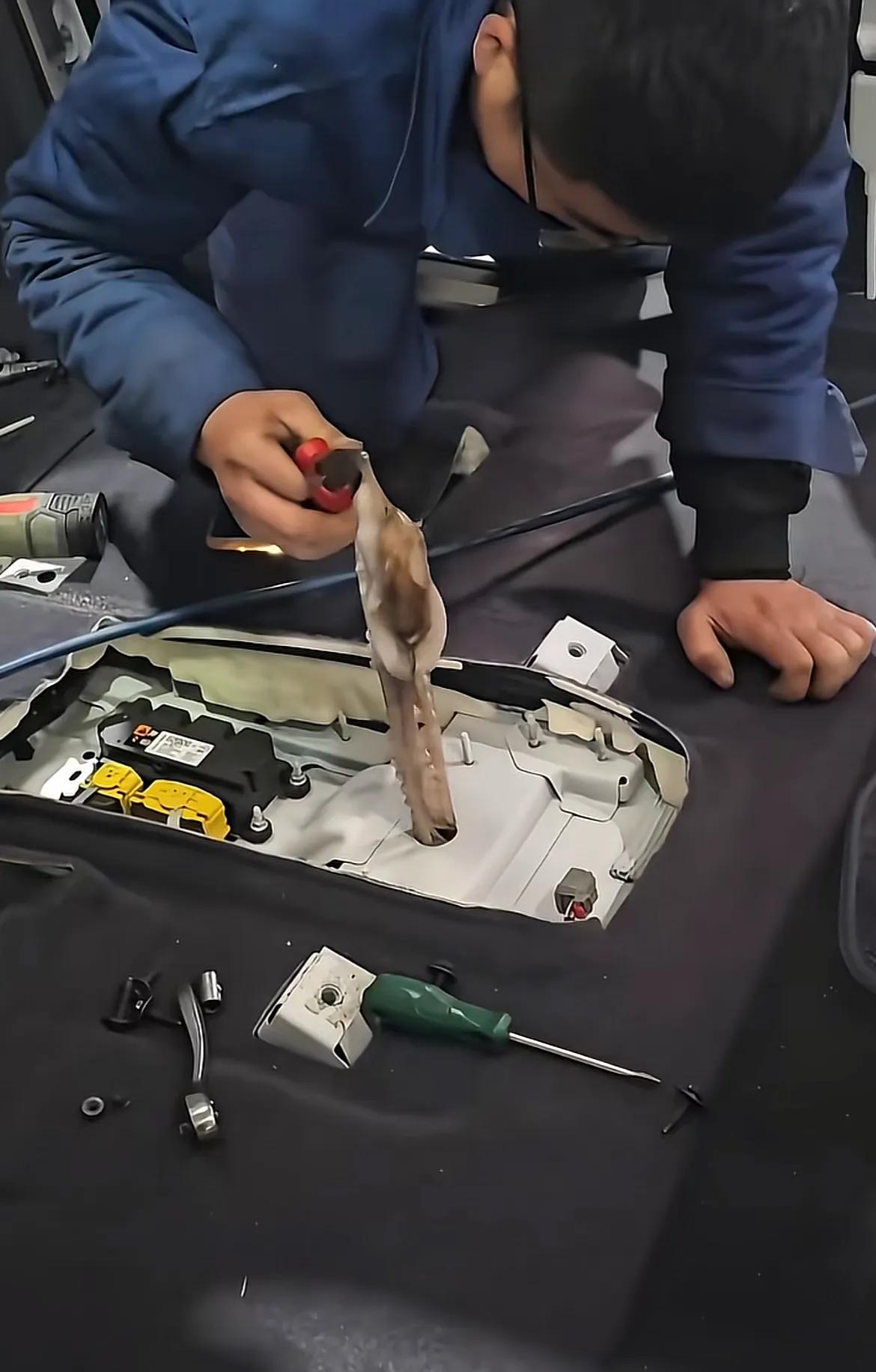 找到了!山东聊城,一对小夫妻刚买了两个月的新车,爬进了一只八爪鱼,无奈只好拆车寻找,花费400元,终于把八爪鱼找出来。 怪事儿年年有,今年格外多,前段时间,济南跑了一只鳌鱼,一不小心成了网红,近日,聊城又跑了一只八爪鱼,也上了热榜,全网浏览超400万,点赞超2万。 这事儿真挺奇葩的,据说,这只八爪鱼已经是处理过的,开膛破肚了,居然还能爬,而且它钻的这地方,真是进去容易出来难。 这个东西吃起来鲜香,但要是过了三天没找到,那个味道真是一言难尽。于是小夫妻只好求助修车店。 从画面看,修车工是把车的主驾和副驾座椅都拆了,然后在扶手盒的一个洞里找到了这只调皮的八爪鱼。 从洞里往外取八爪鱼,真是一个技术活,修车工用尖嘴钳子夹住八爪鱼的头,往外一点一点慢慢拽,生怕用劲大了,就把八爪鱼的腿拽断了。 咱看拽的过程倒是挺解压的,修车工可遭罪了,所说差点熏得吐出来,没想到,这只八爪鱼还挺大,真不知道,它是怎么钻到这么小的洞里的。 好好的新车,拆了个稀碎,估计,这对儿小夫妻也够心疼的,不过,找八爪鱼的过程被记录下来,并且在网上意外火了,也算是歪打正着了。