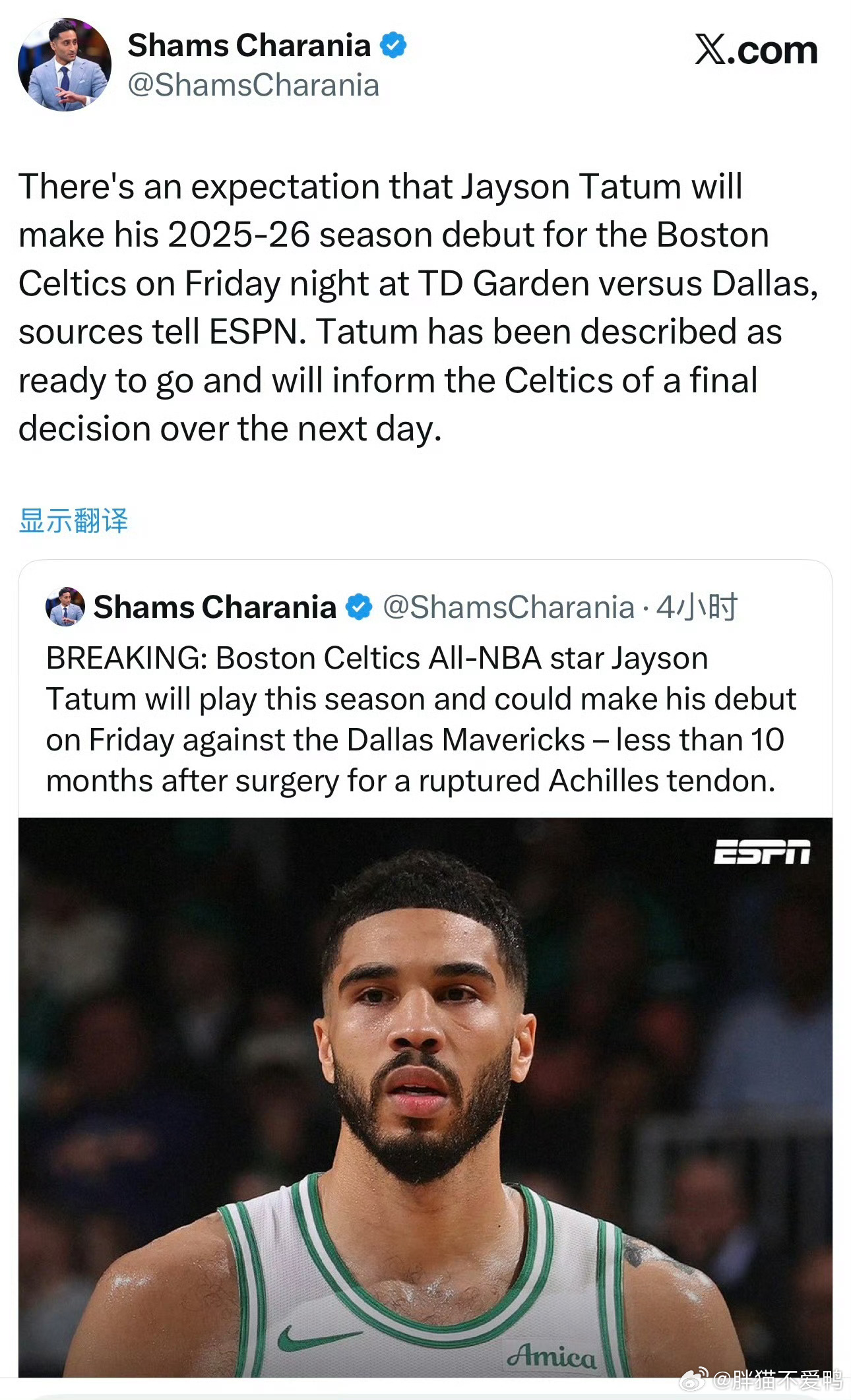 真的是医学奇迹!根据名记Shams的最新消息——北京时间3月7日上午8点,凯尔特人主场对阵独行侠,塔图姆预计迎来赛季首秀 。此时距离他遭遇毁灭性的跟腱断裂修复手术,甚至还不到10个月 。