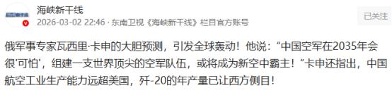 俄军事专家瓦西里·卡申的大胆预测,引发全球轰动!他说:“中国空军在2035年会很'可怕',组建一支世界顶尖的空军队伍,或将成为新空中霸主!“卡申还指出,中国航空工业生产能力远超美国,歼-20的年产量已让西方侧目! 说实话,当斯特拉斯堡那块电子屏上跳出那些冷冰冰的预测数字时,恐怕连五角大楼的那帮人都没想到,天空的主人要换了。 2026年的春天,你要是走进成都或者沈阳那些航空产业核心区,空气里绷着的可不是什么硝烟味儿,而是一种让人屏住呼吸的工业脉搏。20万平方米的自动化车间就像一座精密到可怕的钟表,机械臂每挥一次,都意味着大国实力在无声扩张。 俄方军事专家瓦西里·卡申曾言“2035年中国空军将变得很可怕”。如今看来,这哪里算得上预言?不过是对中国空军迅猛发展的一种直观预见罢了。这就是正在发生的现实! 支撑这个判断的,是几组让对手脊背发凉的硬数据。于成都的生产线上,歼 - 20的年产量已然稳固地维持在约120架的水平。什么概念?每隔三天,就有一架涂着最先进隐身涂料的"威龙"滑出厂房。再看看大洋彼岸那边,同类型战机的年交付量连这个数字的三分之一都不到。 这种产能上的碾压,可不是简单地堆数量。沈阳车间的全自动数字化装配线已经实现了"3天组装一架隐身战机"的奇迹。更狠的是,通过极度扁平化的供应链控制,中国战机的造价只有西方同类产品的60%。 既能制造得出,又有能力负担制造成本,如此这般,方是令对手深感绝望之所在。 目前,中国空军的现代化战机占比已经突破85%,总规模达到2284架。截至2025年底,歼-20的服役数量已经跨过250架大关。跟美国那些因为维护成本高昂而常年"趴窝"的机群不一样,得益于200多家纯国产供应商的闭环支撑,中国战机的日常妥善率常年维持在70%的高位。 当美军还在为发动机零件或者隐身涂层工艺被第三方国家"卡脖子"而头疼时,中国的航空工业正在享受全要素内循环带来的战略红利。 技术代差的逆转,往往发生在对手最得意的时候。2011年,美国以傲慢之态拆除了F - 22战机生产线,彼时的他们盲目自信,笃定这款战机足以称霸苍穹达半个世纪之久。结果如何?现实如一记响亮耳光,毫不留情地扇来,让幻想瞬间破碎,残酷地宣告着理想与现实之间那难以逾越的鸿沟。 2025到2026年这段时间,中国六代机研发展现出的"中国速度"简直让人咋舌。自首飞伊始,仅仅15个月的短暂时光,便达成了第四架原型机投入多机协作测试的重要进展,这般高效着实令人惊叹!无尾飞翼布局、激光武器、无人僚机协同……这些曾经只在科幻电影里出现的玩意儿,现在已经在实机测试中一个个兑现了。 按照目前的进度,2030年前后,中国六代机就能小批量入列,到2035年形成完整体系。那么,美国的下一代空中优势(NGAD)项目究竟如何呢?它在军事科技领域备受瞩目,其发展态势与未来走向都引发着广泛的关注与探讨。当下仍深陷风洞试验的悠长周期之中,进展颇为迟缓。依目前状况预估,直至2040年,我们方有机会一睹真机的风采。 整整十年的技术领跑时间差,足以重新定义什么叫"空中霸权"! 毋庸置疑,中国空军的崛起绝非意在角逐全球霸权。其发展秉持和平理念,是为守护国家主权、安全与发展利益,彰显大国担当,维护世界和平稳定。这种战略清醒在部署重心上体现得明明白白。跟美军那种全球撒胡椒粉式的分散部署不一样,中国空军所有的锋芒都收拢在"自家院子"里。 歼-11系列负责日常的"推门看客",歊-20负责战时的"踹门破阵",再配上空警-500的脑力调度和运-20的远程投送,这套战术体系在第一岛链内构建了一道根本过不去的屏障。 不仅如此,核威慑的天平也在悄悄移动。外界评估显示,至2030年,中国核弹头数量将实现显著跨越,从2023年的500枚跃升至1000枚大关,这一变化或引发国际社会的广泛关注与深入思考。当战略轰炸机跟这种量级的核力量深度结合时,所谓的"区域优势"将彻底变成一种心理上的绝对防线。 兰德公司的评估报告说得很直白:到2035年,在台海与南海区域,优势将不再属于那个远在万里之外的全球帝国。 此绝非几架飞机之间简单的胜负角逐。它背后蕴含着更为深远的意义,牵扯诸多因素,绝非表面那般一目了然,其影响也远非局限于当下的胜负结果。过去十年,中国在半导体、高端机床、机器人领域的全产业链升级,才是支撑起这座蓝天长城的钢筋骨架。这种厚积薄发的工业底蕴,让2035年这个时间节点显得格外有宿命感。 现在的天空依然湛蓝,但关于谁才是这片领空的主人,答案正随着每一架下线的隐身战机变得越来越清晰。那不是靠咆哮和恫吓得来的地位,而是靠厂房里永不停歇的脉冲生产线,一公分一公分测量出来的尊严! 信源:海峡新干