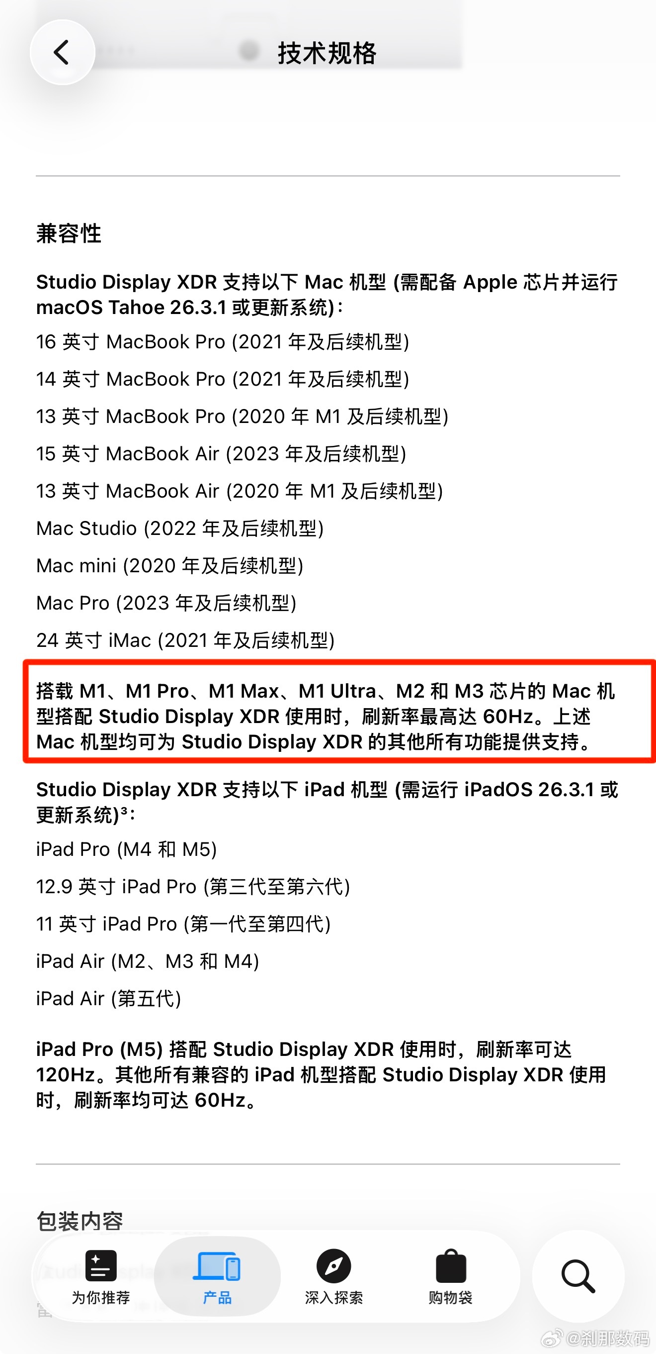 Studio Display XDR。备注:搭载 M1、M1 Pro、M1 Max、M1 Ultra、M2 和 M3 芯片的 Mac 机型搭配 Studio Display XDR 使用时,刷新率最高达 60Hz。