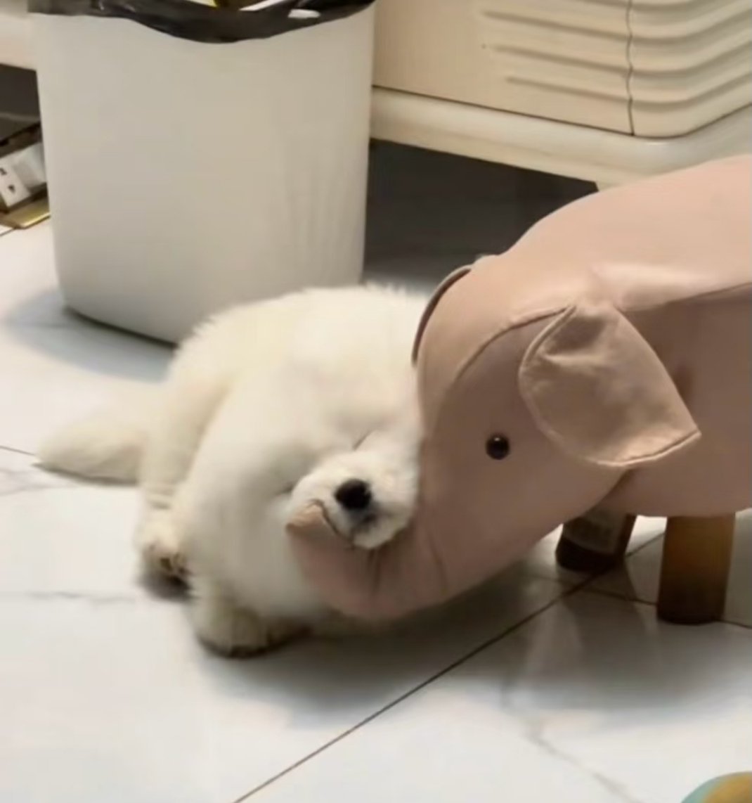 小狗把嘴筒子放在小象的鼻子上睡觉,太聪明了