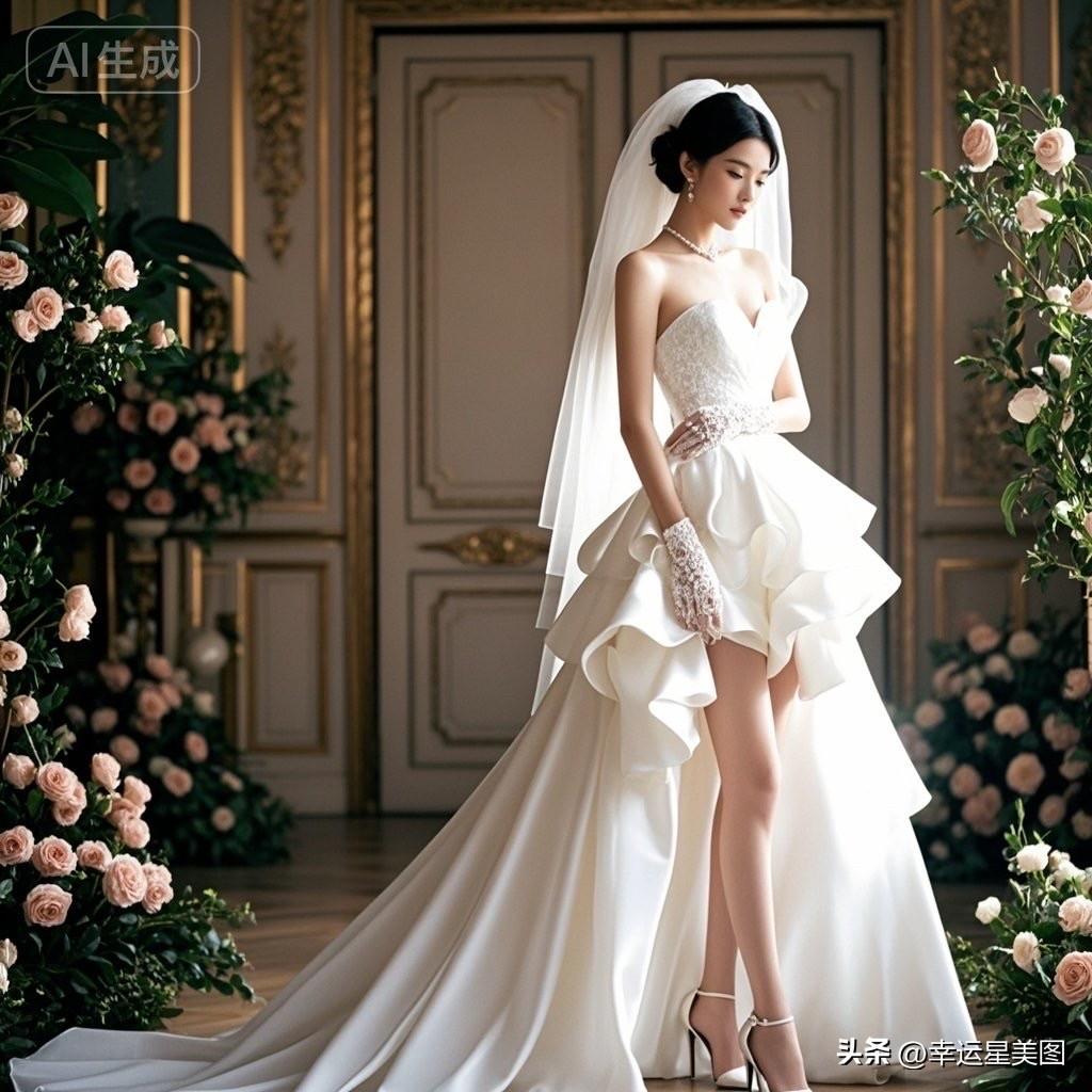 梦幻婚纱照,优雅白裙,花海中的新娘🌸💍