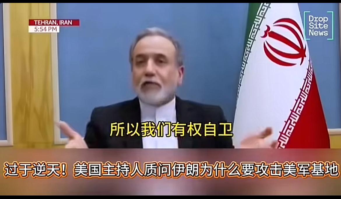 脸皮真厚!大漂亮主持人质问伊朗外长,你们为什么攻去我们的军事基地,那可是红线!伊朗外长说,那些基地攻击我们,我们有权自卫! 唉,强大了就不讲理,我打你可以,你打我不可以!
