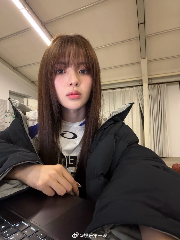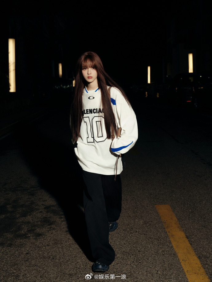 杨超越启程巴黎看秀6日凌晨,出发巴黎时装周,齐刘海长直发、白色长袖球衣,简单清