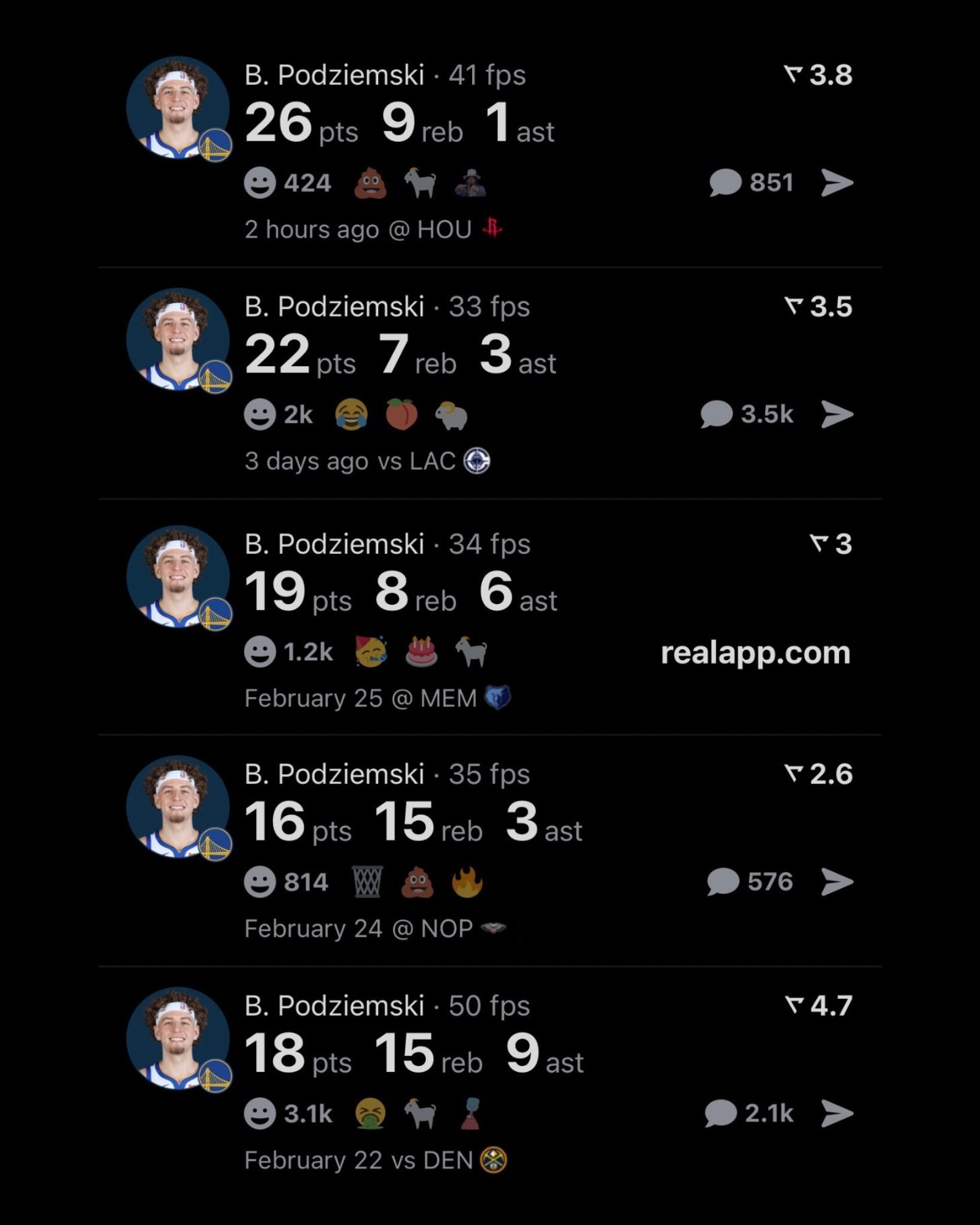 春天了 波杰手感也在慢慢回暖今日波杰拿下26分9板1助 功不可没近五场的场均数据:场均出场38.6分钟砍下20.2分、10.8篮板、4.4助攻。金州勇士