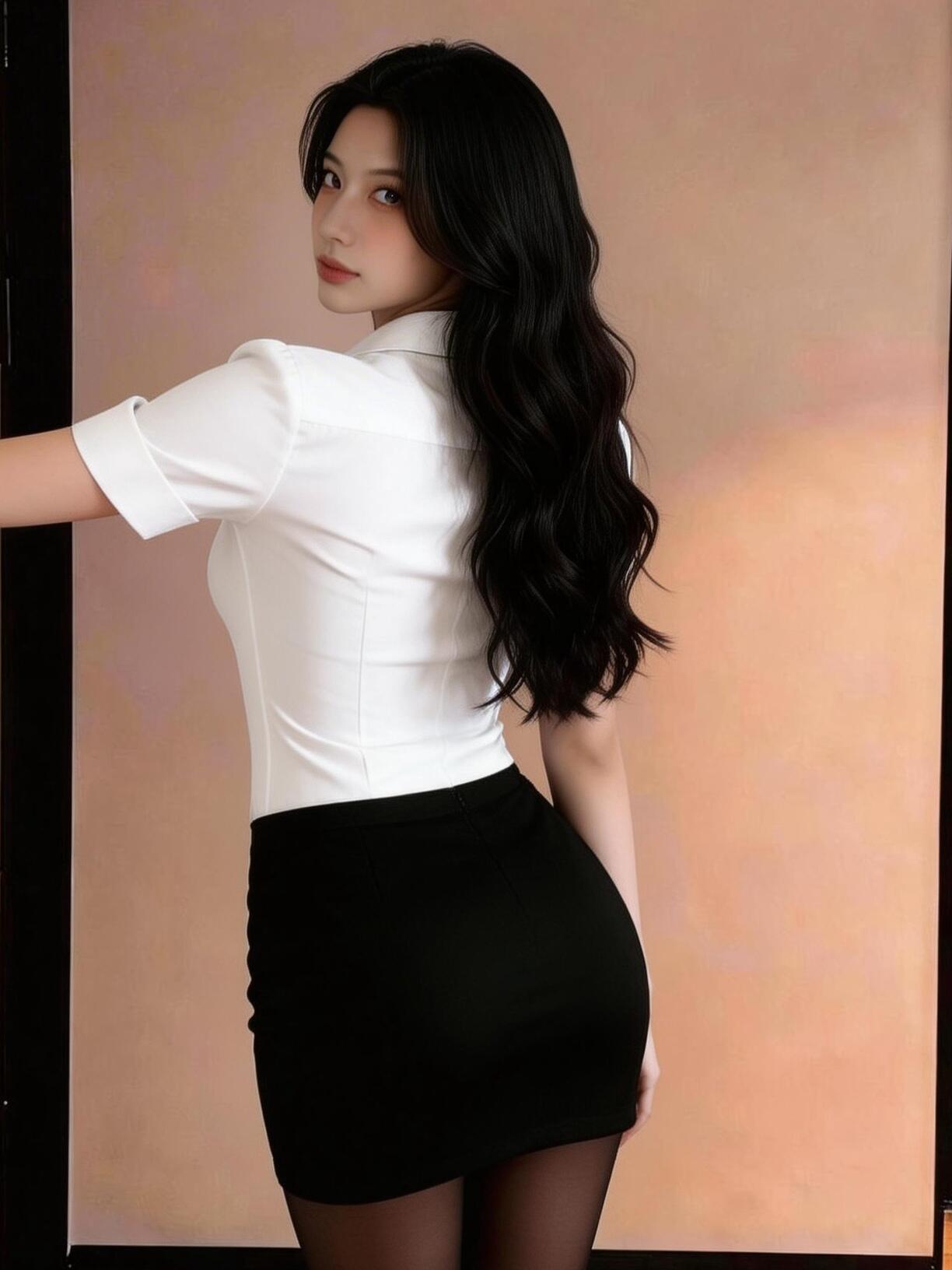 都市风穿搭,白色上衣+黑色喇叭裤,走在乡间小路上,尽显时尚与自然之美!