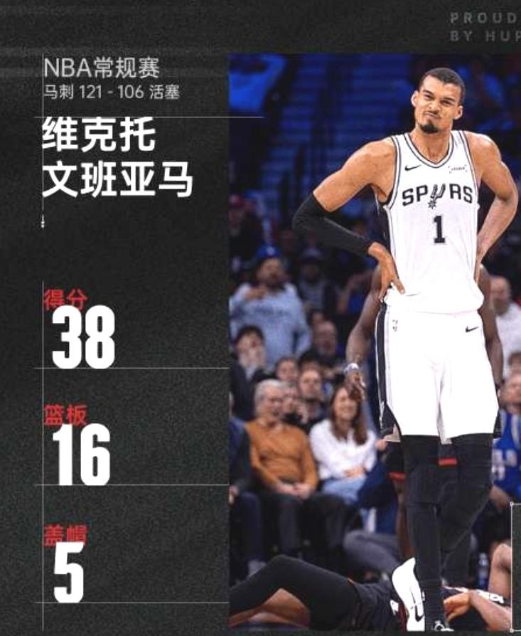 强的离谱,文班38+16+5+3提前锁定今日最佳球员! 本以为马刺主场同活塞是一场势均力敌的比赛,没想到主队不费吹灰之力以121-106战胜活塞。其实活塞打的挺好,无奈马刺的文巴亚马太过强势,犹如天神下凡一般。 本场比赛,文班亚马24投12中,三分球10投4中,罚球11投10中,得到38分16篮板3助攻5封盖。值得一提的是,同活塞的比赛,文巴亚马出场时间高达38分钟。 时间来看,他的状态已经恢复到了百分之百,毋庸置疑,拥有健康文巴亚马的马刺瞬间成为总冠军的热门球队!38分16篮板5盖帽3助攻,如此豪华的数据也让文班亚马提前预定今日最佳球员。 目前马刺获得两连胜,以45胜17的战绩继续稳居西部第二,距离第一的雷霆有三个胜场。恐怕,看到如此状态的马刺,雷霆又该慌了!