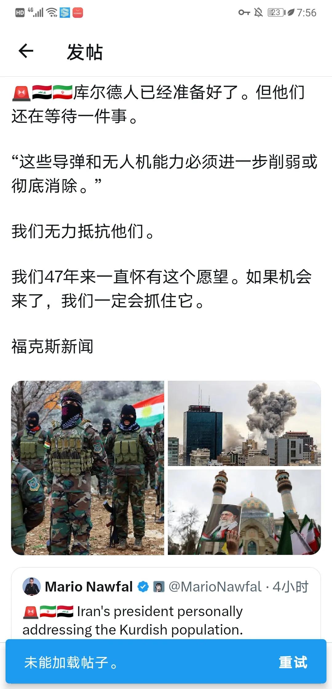 确有库尔德人从伊拉克进入伊朗,但只是某些前伊朗库尔德人。伊拉克库尔德人在观望,而且怕土耳其和伊朗双打压,已多次申明不会进入伊朗。哈哈。伊朗境内的库尔德人也分几派,会参与,但仍在等恰当时间。少量人行动可忽略。