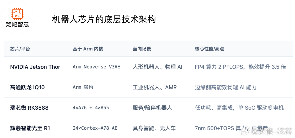 赛道从概念走向落地,芯片架构的选择直接决定产品竞争力,Arm 已经成为机器人智能化的底层核心底座。