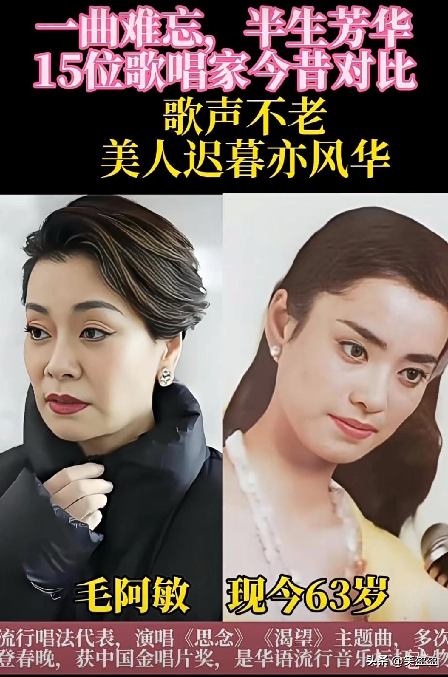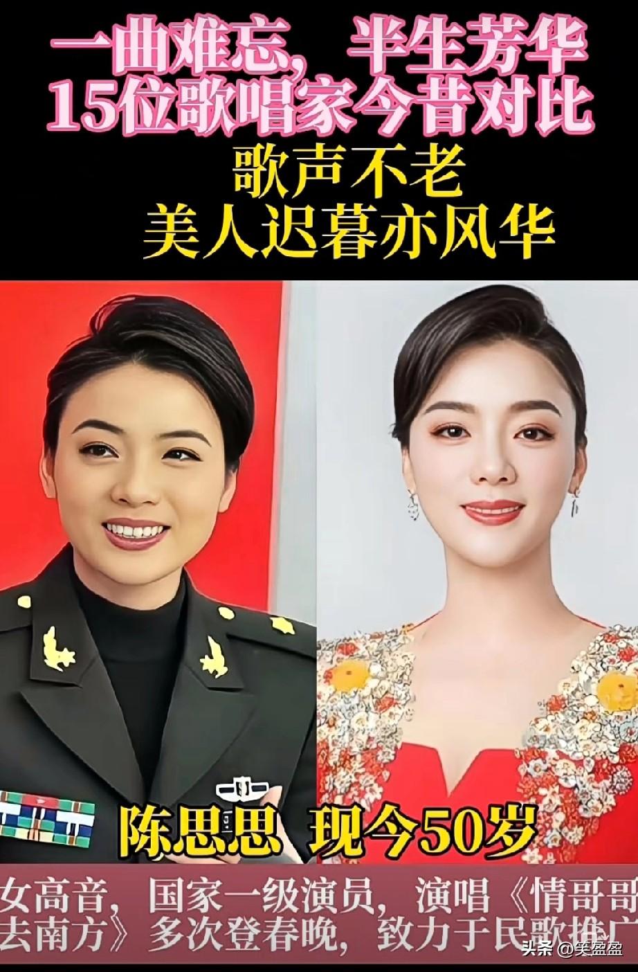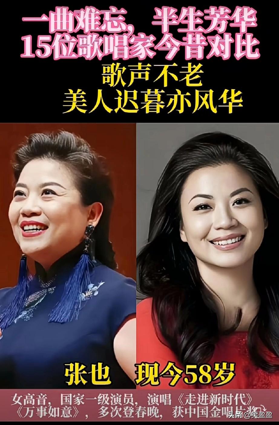 一曲难忘,半生芳华。 15位歌唱家今昔对比 歌声不老,美人迟暮易风华。 你最喜欢