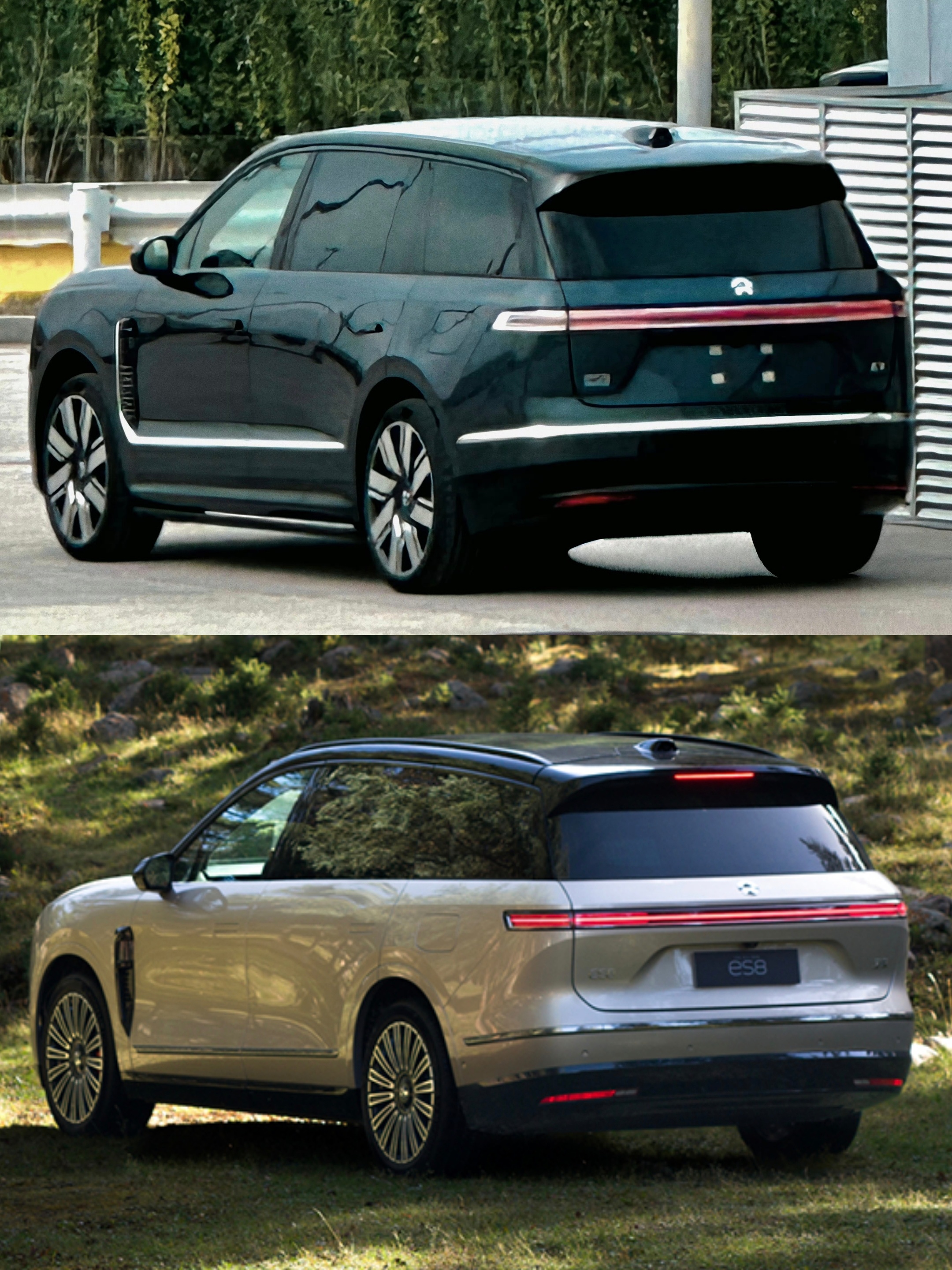 蔚来ES9实车曝光,我找了张ES8几乎同角度的图,对比一下