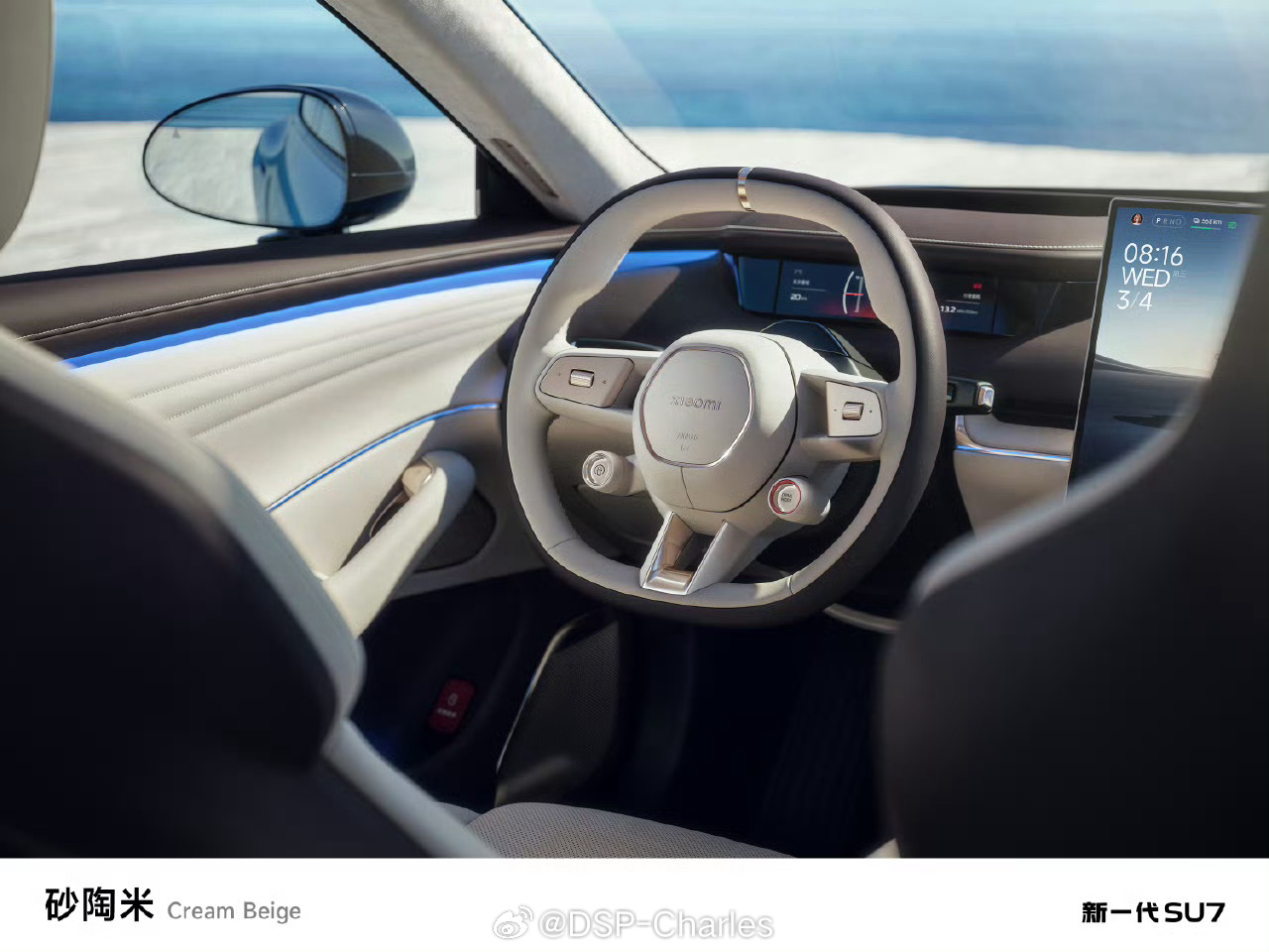 新一代SU7的砂陶米色内饰,细节做得很好,还没看到有人分析,我聊两句: