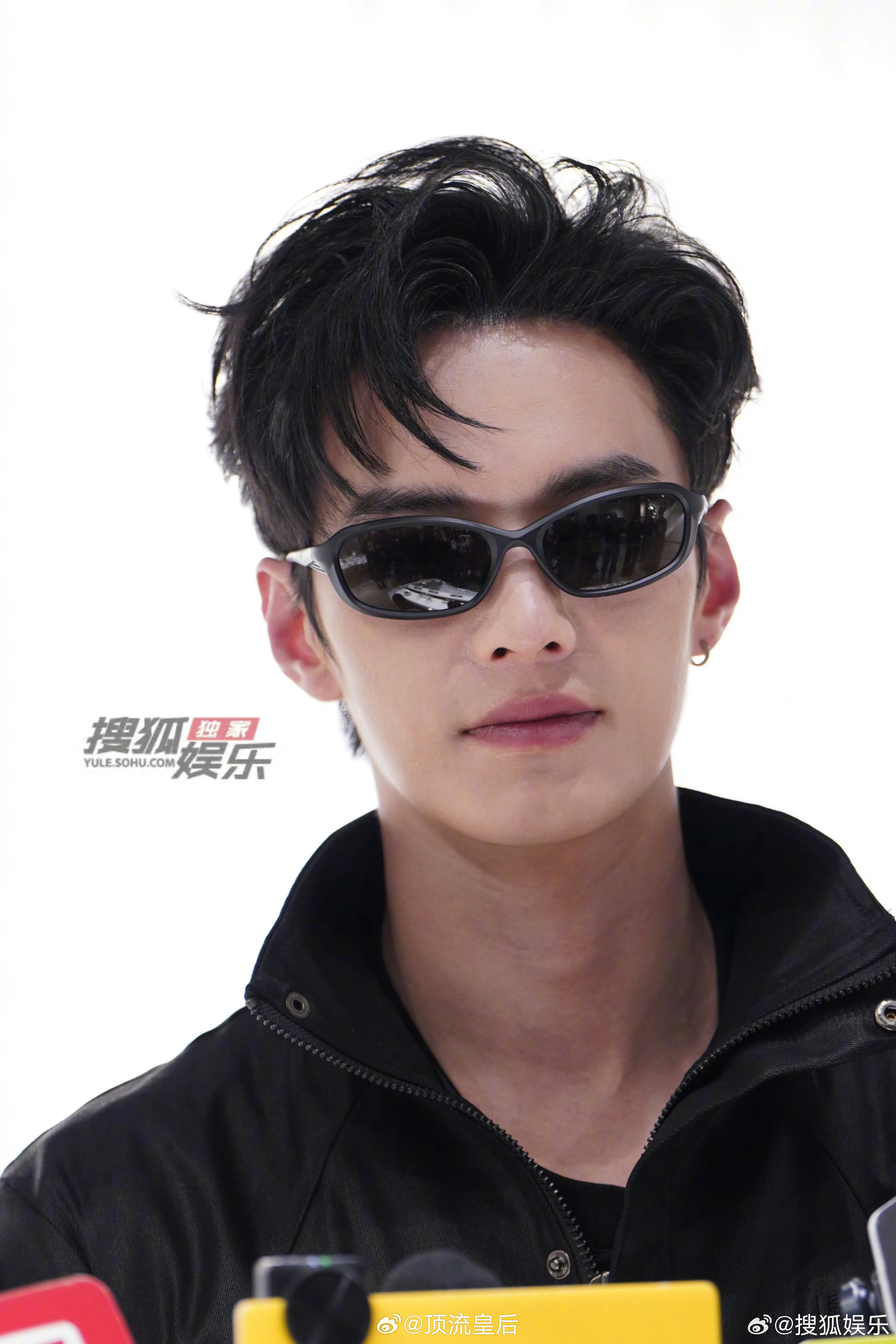 何与上海活动采访生图,墨镜+皮衣的搭配又酷又潮,今天是小狼狗啊。