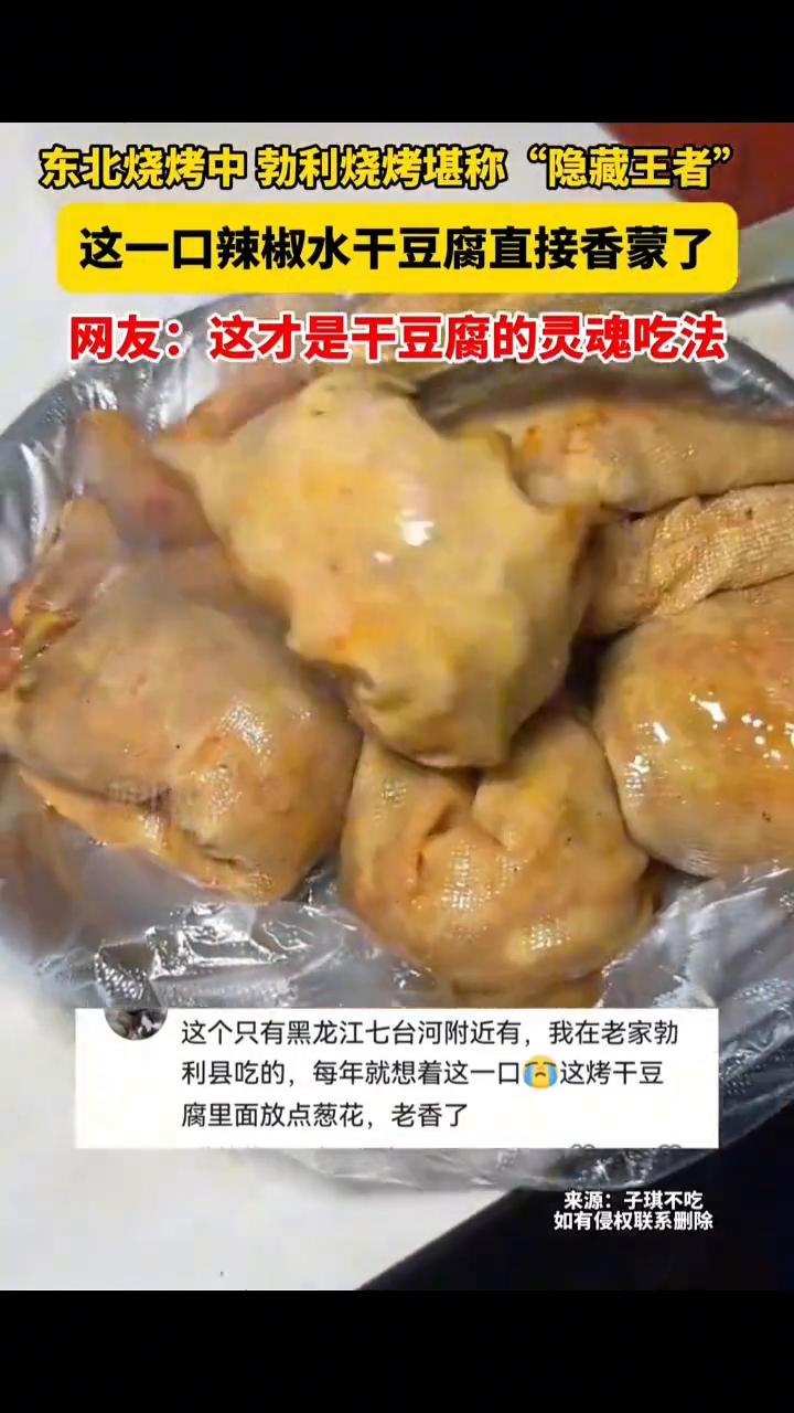 东北烧烤中勃利烧烤堪称"隐藏王者",这一口辣椒水干豆腐直接香蒙了。网友:这才是干豆腐的灵魂吃法。 3月5日,黑龙江七台河。烤干豆腐必须得是大美勃利,这个只有黑龙江七台河附近有,我在老家勃利县吃的,每年就想着这一口烤干豆腐里面放点葱花,老香了。 来源:子琪不吃,如有侵权联系删除。