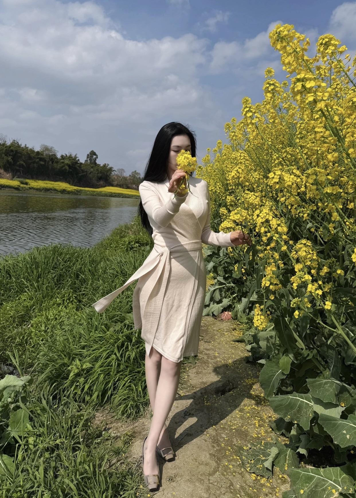 怎样穿搭能显示出温柔的女生气质?春日踏青路,花间闻鸟语。
