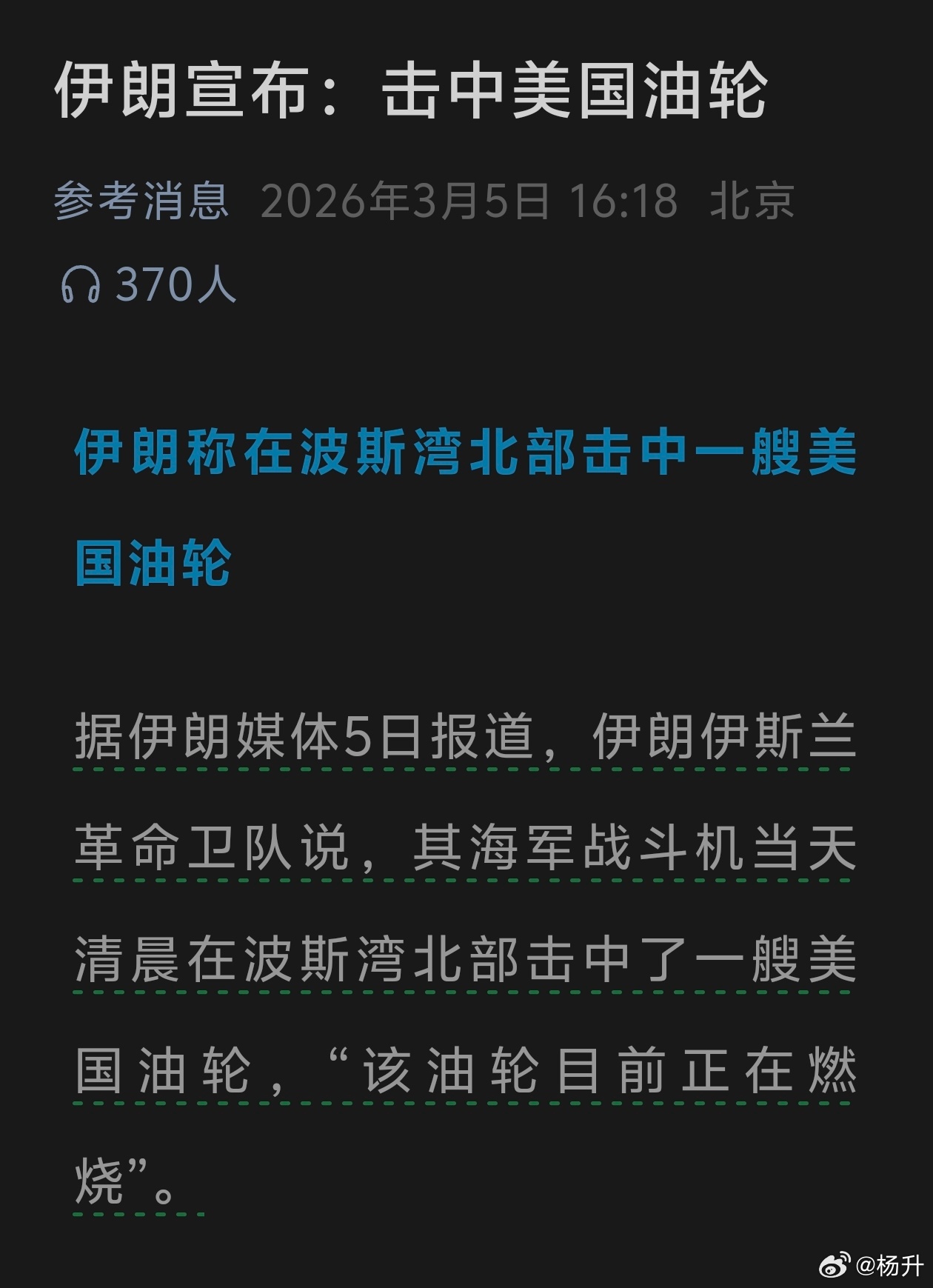 那意思就是要么美国短期内干趴伊朗,伊朗失去封锁海峡的能力或者放弃封锁海峡选择妥协,要么美国选择体面止损,主动找台阶退出冲突,然后海峡恢复平静开始通航。