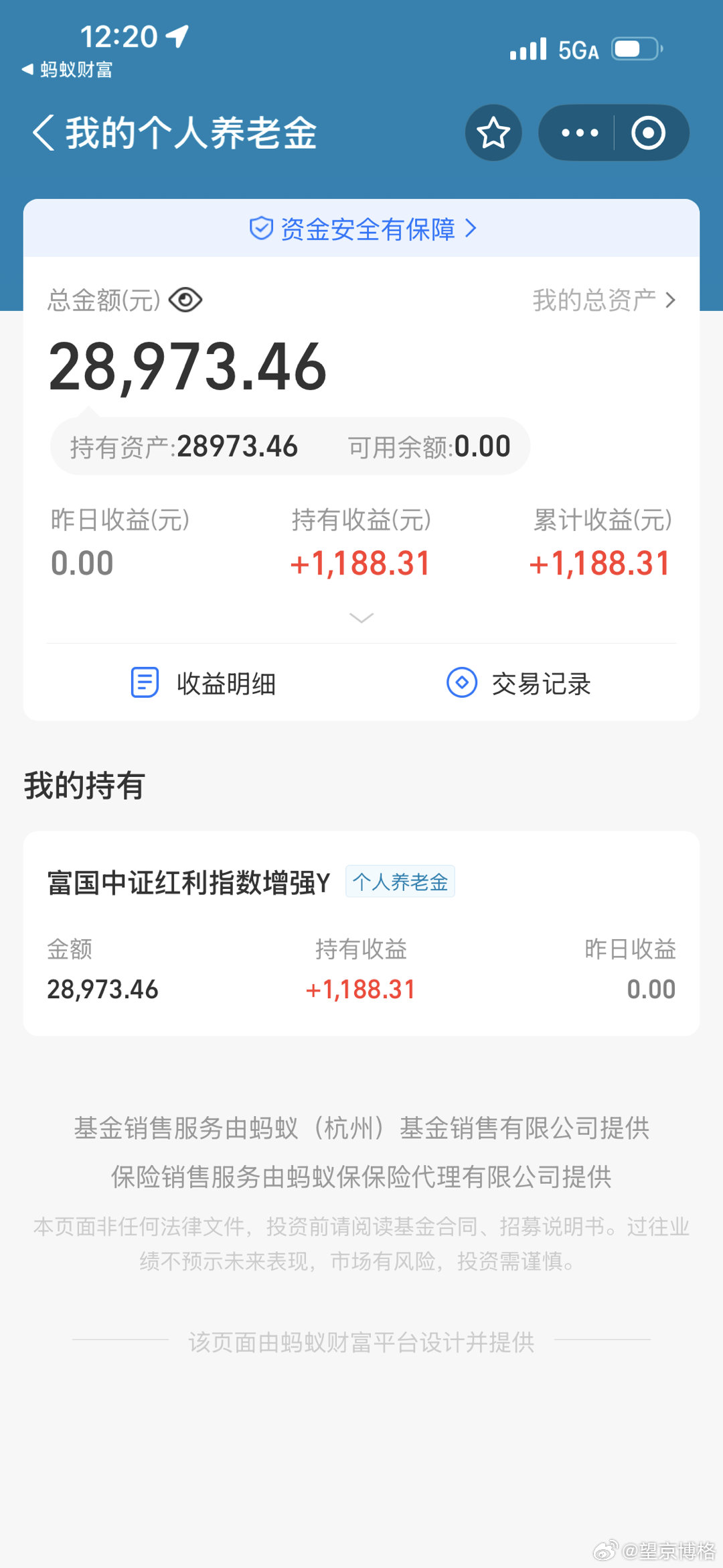 2026年个人养老金额度,配置富国红利指数增强,刚看了一下经历最近市场波动之后,还有不少盈利。