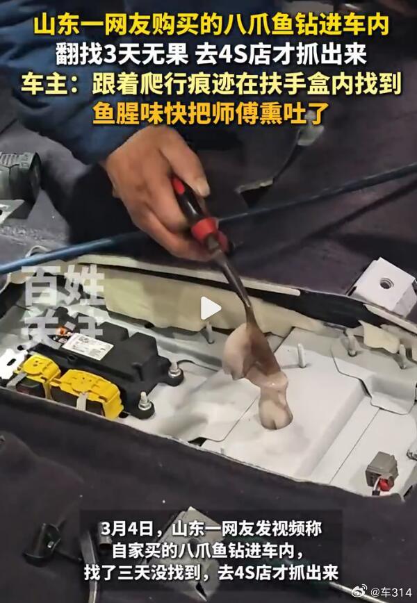 八爪鱼这种生物,那可是挺聪明的,只要有个小缝就能溜走,因为它身体是柔软的,就跟键盘清洁泥一样。如果你要买八爪鱼,最好用密封的瓶子装,比如说广口罐头瓶,千万不要用塑料袋,否则就会跟这事里的车主遭遇一样,八爪鱼钻进车里找不到了,只有拆内饰才找得到…..而且就算拿出来了,这车里的味道也得持续好一段时间,尤其是夏天,这车基本就废了。八爪鱼钻车内失踪3天车主崩溃求助